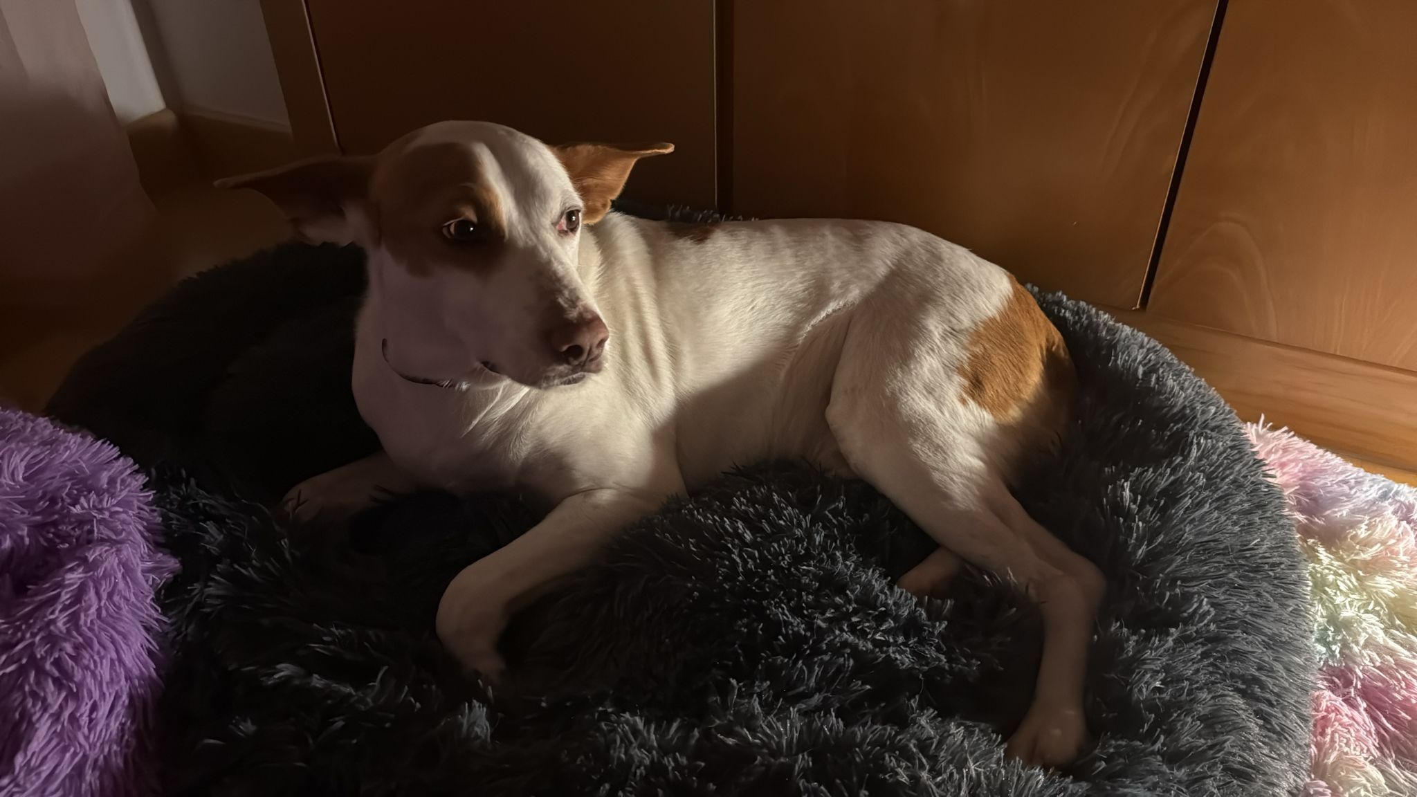 Esta preciosa pequeña de aproximadamente 7 años ha vivido encerrada toda su vida para criar sin descanso. Cuando se puso enferma y ya no fue útil, la abandonaron y fue así como acabó en la perrera. Cuando llegó, vieron que estaba muy enferma y en las pruebas que le hicieron vieron que tenía una gran masa en el bazo que no tiene buena pinta y que tiene que ser operada cuanto antes para evitar que empeore. Ayer fue Macu a recogerla y acaba de llegar a BICHOSRAROS: está muy malita, tiene las orejas cortadas, las mamas muy inflamadas y una catarata enorme en el ojo derecho. Tan solo podemos deciros que es muy buena, tranquila y desde que llegó solo pide caricias. Está pendiente de ser intervenida para realizarle la cirugía y ver lo que tiene en el bazo. Enviar mucha energía positiva para que todo salga bien y que esta pequeña pueda conocer lo que es vivir una vida tranquila, sin miedo, sin hambre, sin frío y sin dolor. Os iremos contando cómo va evolucionando.