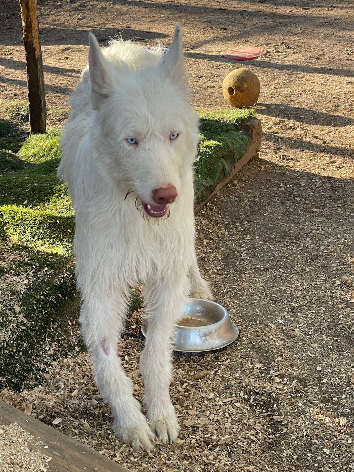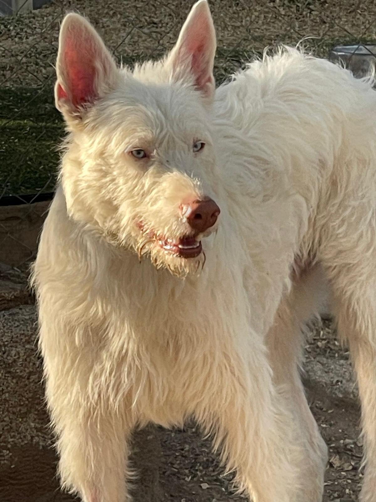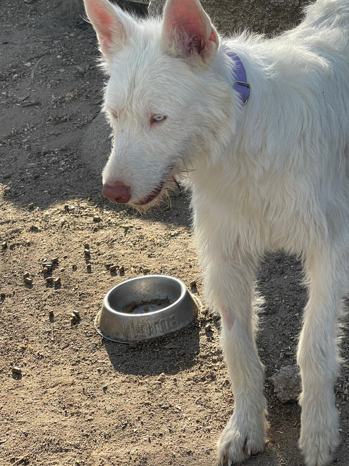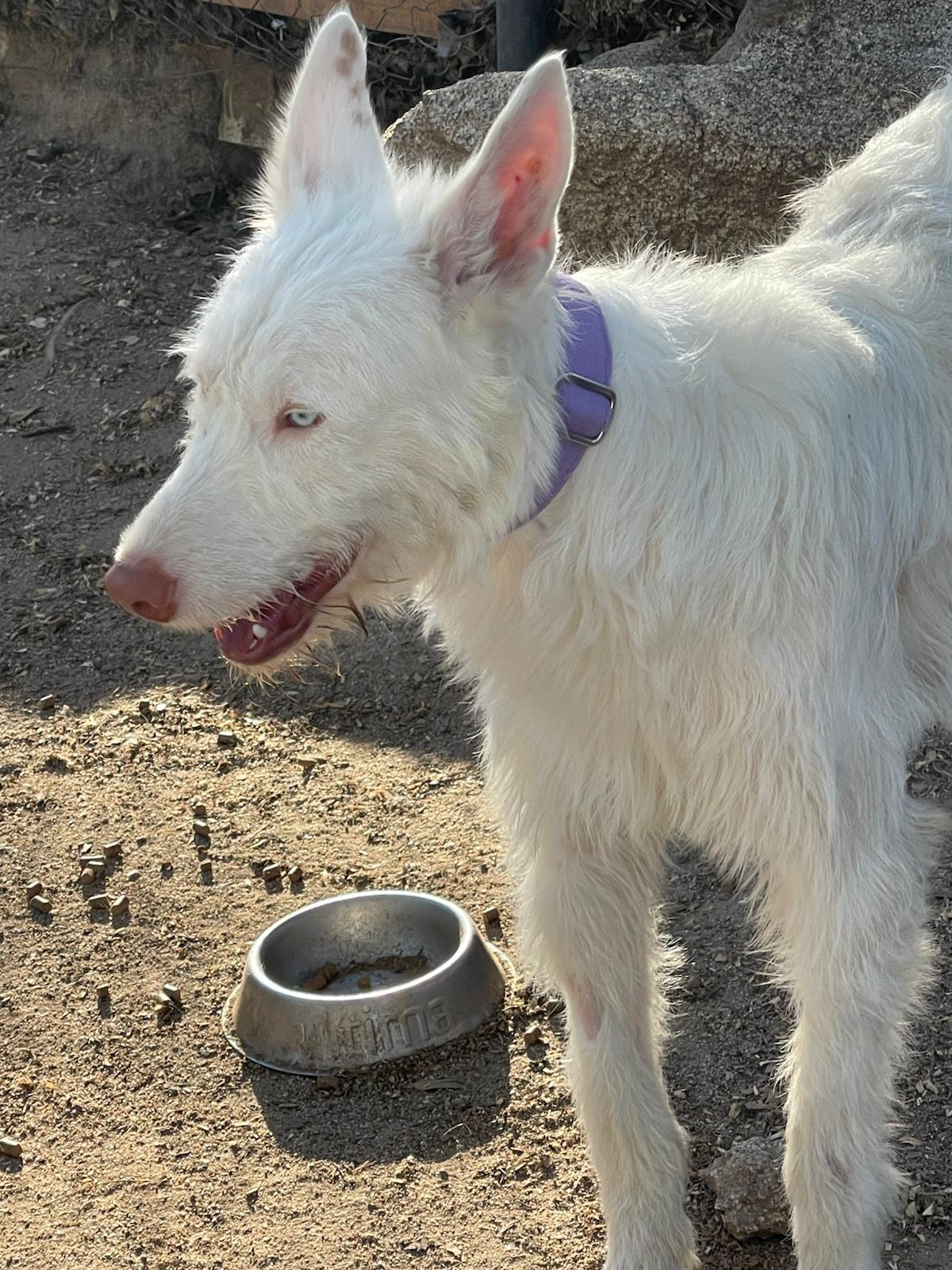 Este podenco, campanero de un año de edad y con unos ojos tan azules como el mar, ha llegado a BichosRaros después de haber sido salvado de una muerte segura cuando intentaban tirarlo a un pozo. Su delito: tener una pequeña deformidad en sus brazos, motivada por un atropello, del que su dueño nunca le curó. Barny solo piensa en jugar y en saborear su libertad, que desde hace muy poco disfruta, ya que hasta ahora ha estado atado en una reala junto a su madre y hermanos. Es un perro sano y la única deformidad que tiene en sus manos no le impide hacer una vida totalmente normal, puesto que no tiene dolor.