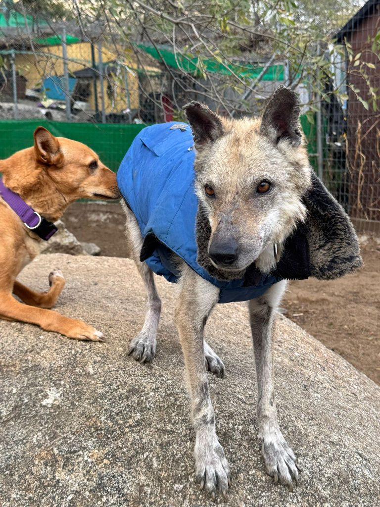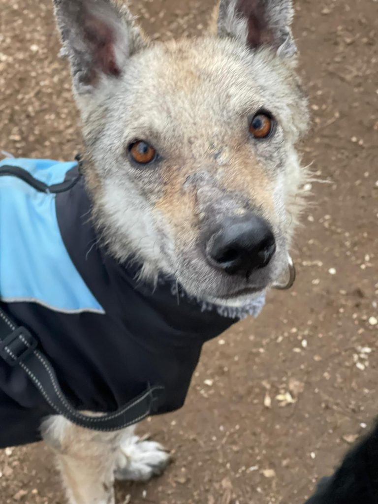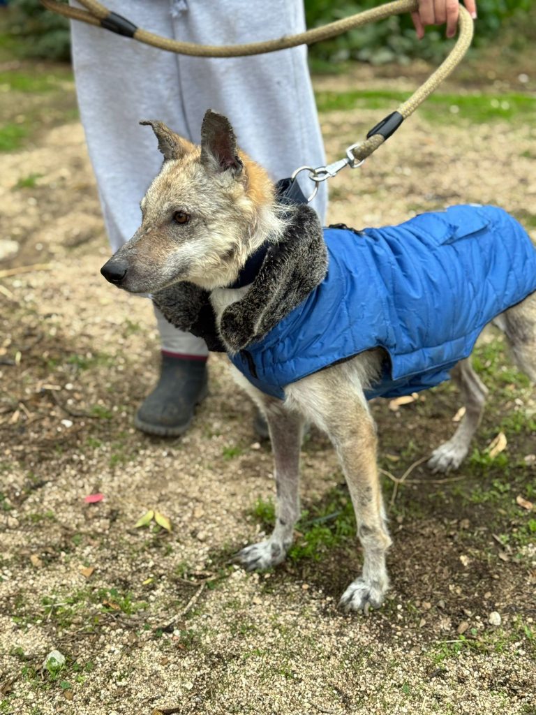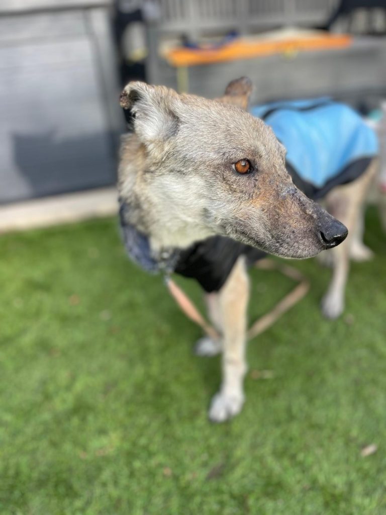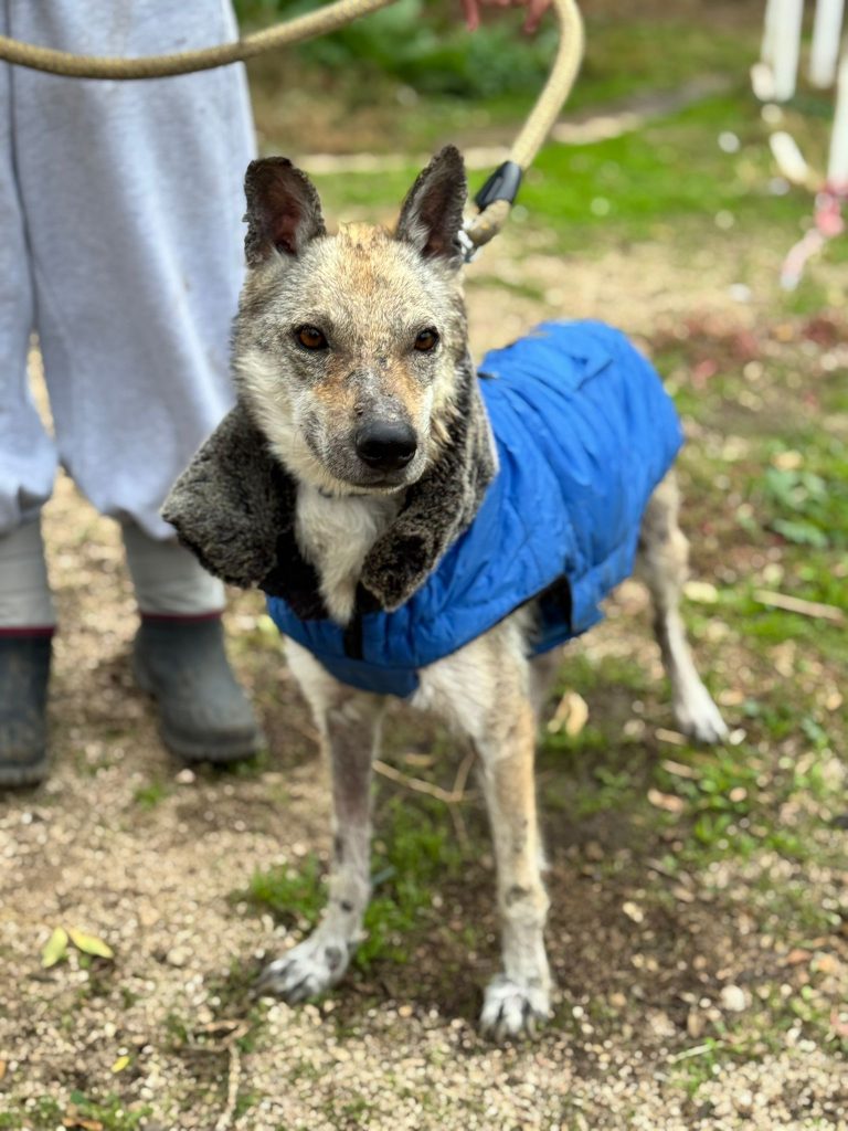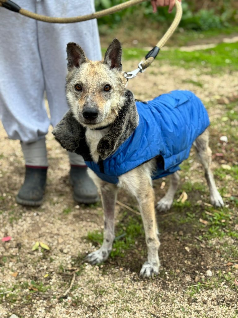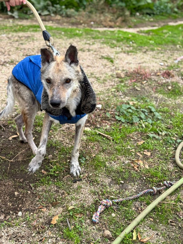 A esta Lobita de cinco años y apenas 12 kilos de peso la hemos rescatado de la perrera de Jerez, porque su estado físico es de extrema delgadez y viene muy afectada por leishmaniasis, aunque su título no es preocupante y su estado general es bueno a pesar de su apariencia. Es extremadamente cariñosa, se lleva bien con todos los perros y solamente quiere estar cerca de ti para que la des cariño. Vamos a empezar ya mismo su tratamiento porque estamos seguros de que en poco tiempo tendrá una familia que la quiera junto a ellos.