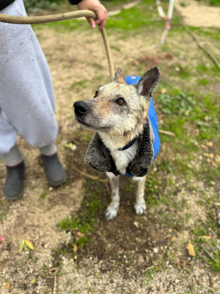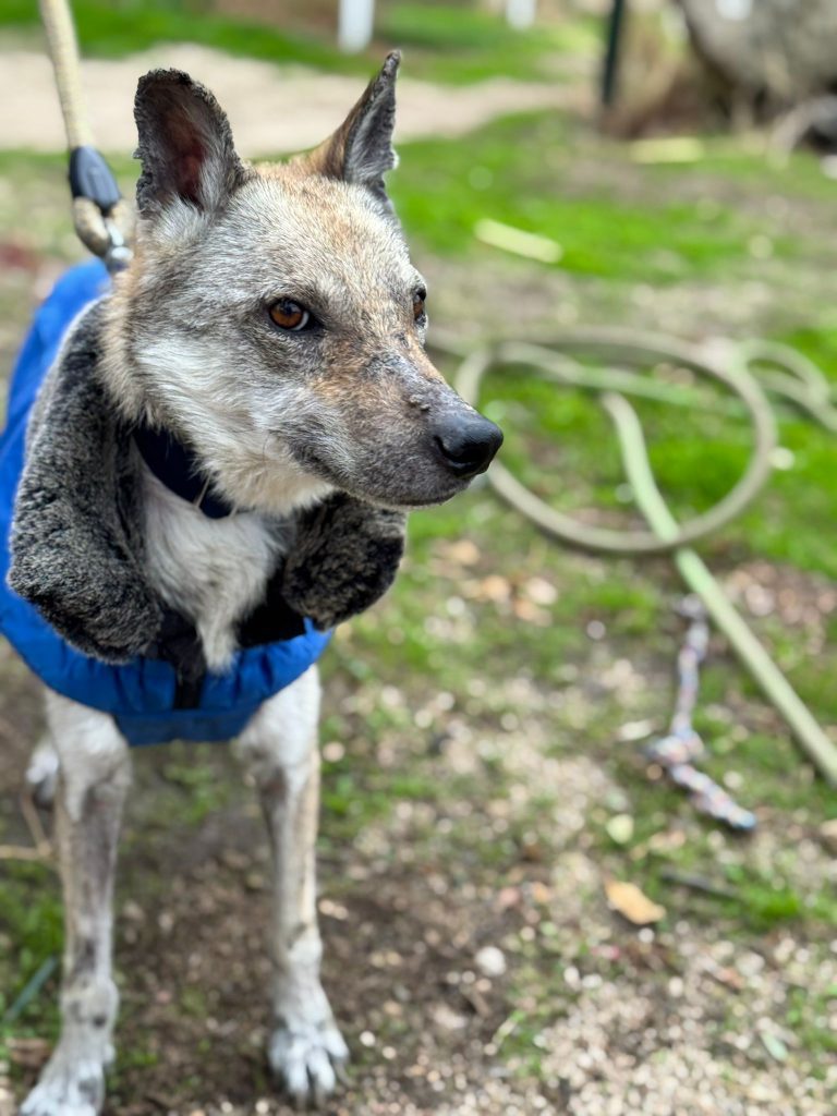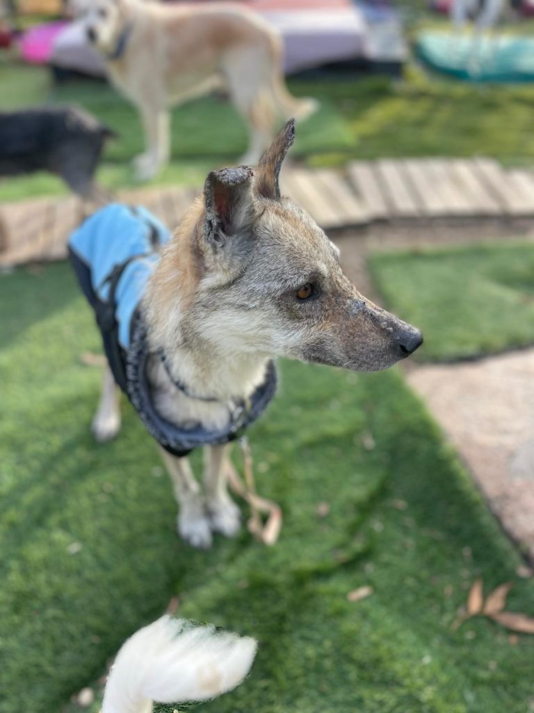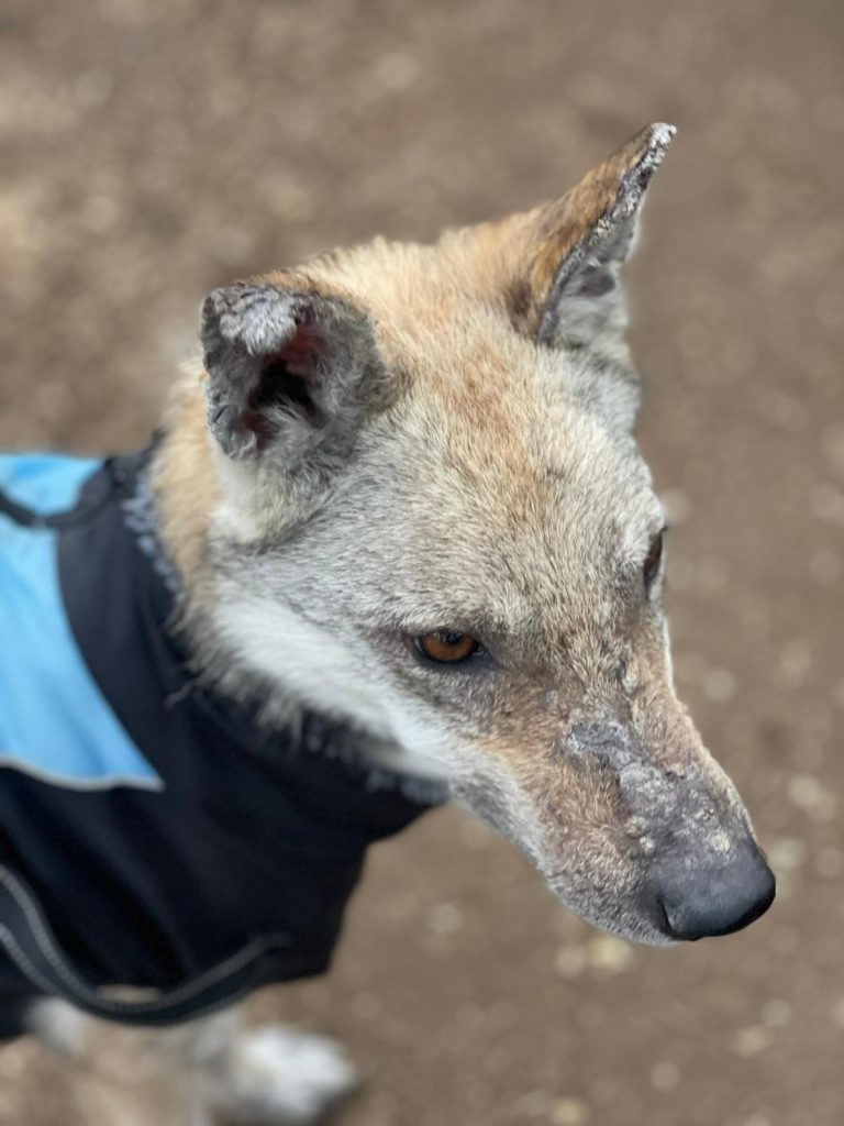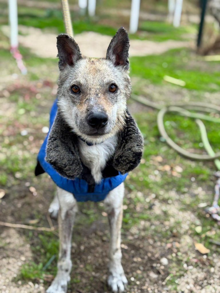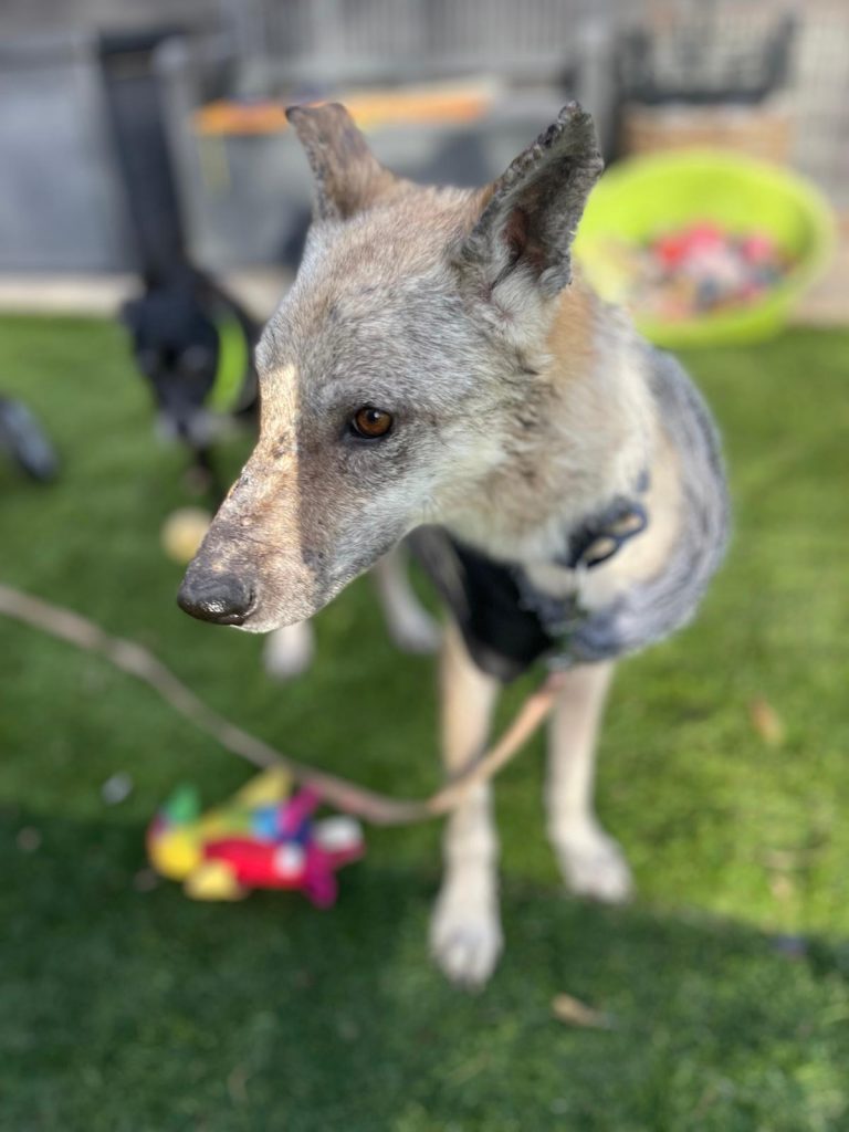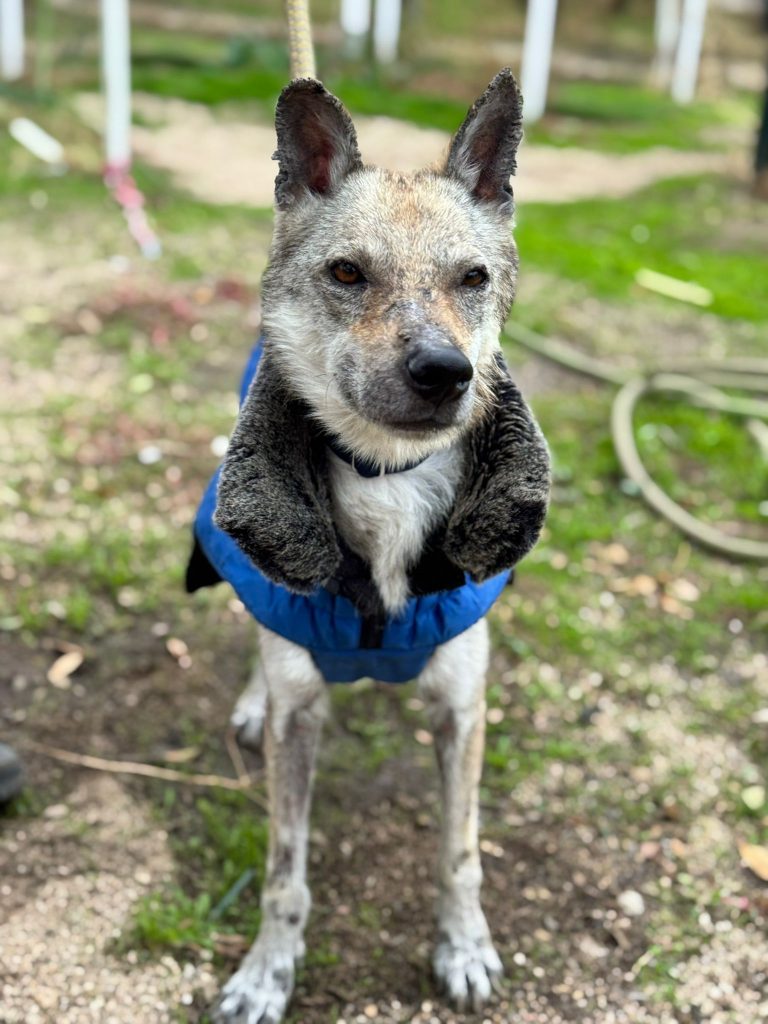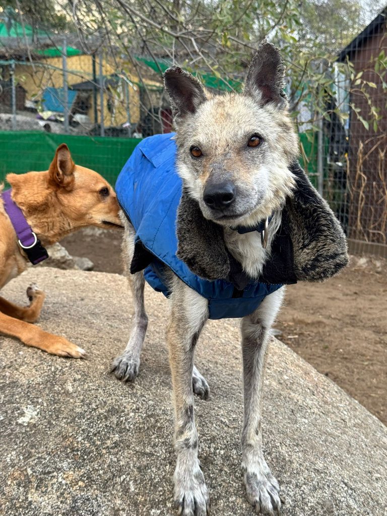 A esta Lobita de cinco años y apenas 12 kilos de peso la hemos rescatado de la perrera de Jerez, porque su estado físico es de extrema delgadez y viene muy afectada por leishmaniasis, aunque su título no es preocupante y su estado general es bueno a pesar de su apariencia. Es extremadamente cariñosa, se lleva bien con todos los perros y solamente quiere estar cerca de ti para que la des cariño. Vamos a empezar ya mismo su tratamiento porque estamos seguros de que en poco tiempo tendrá una familia que la quiera junto a ellos.