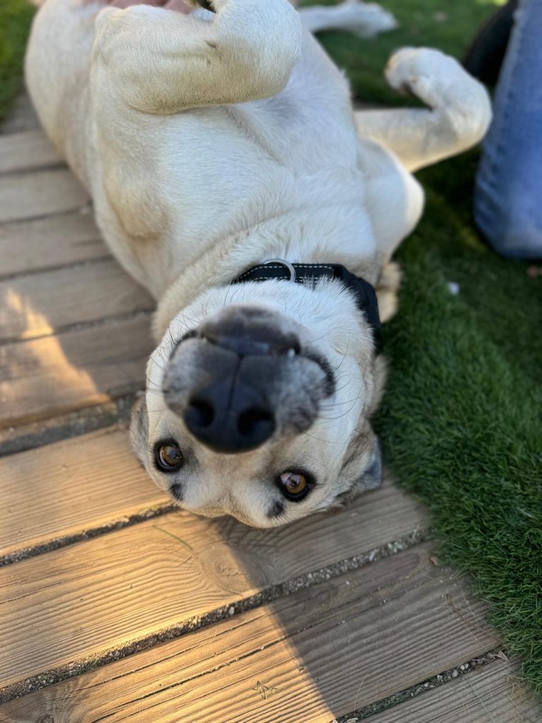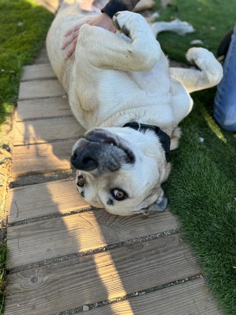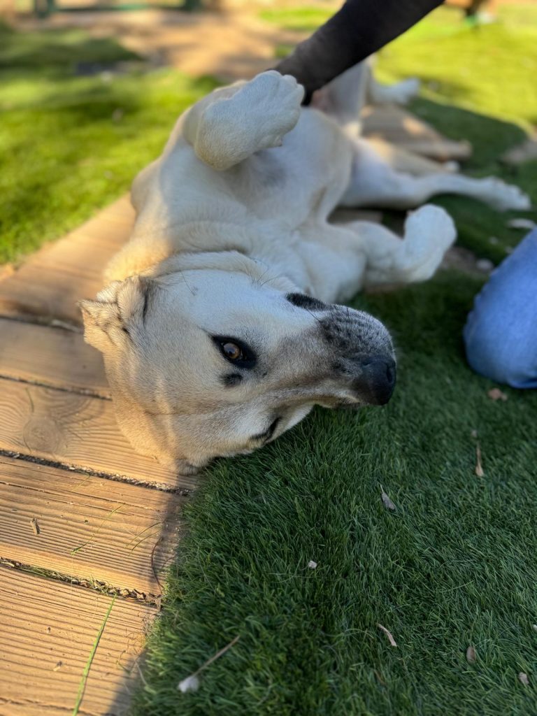 Dona nuestra leona; ella es una perrita superalegre, divertida, mimosa, juguetona y juega con todos los perritos.