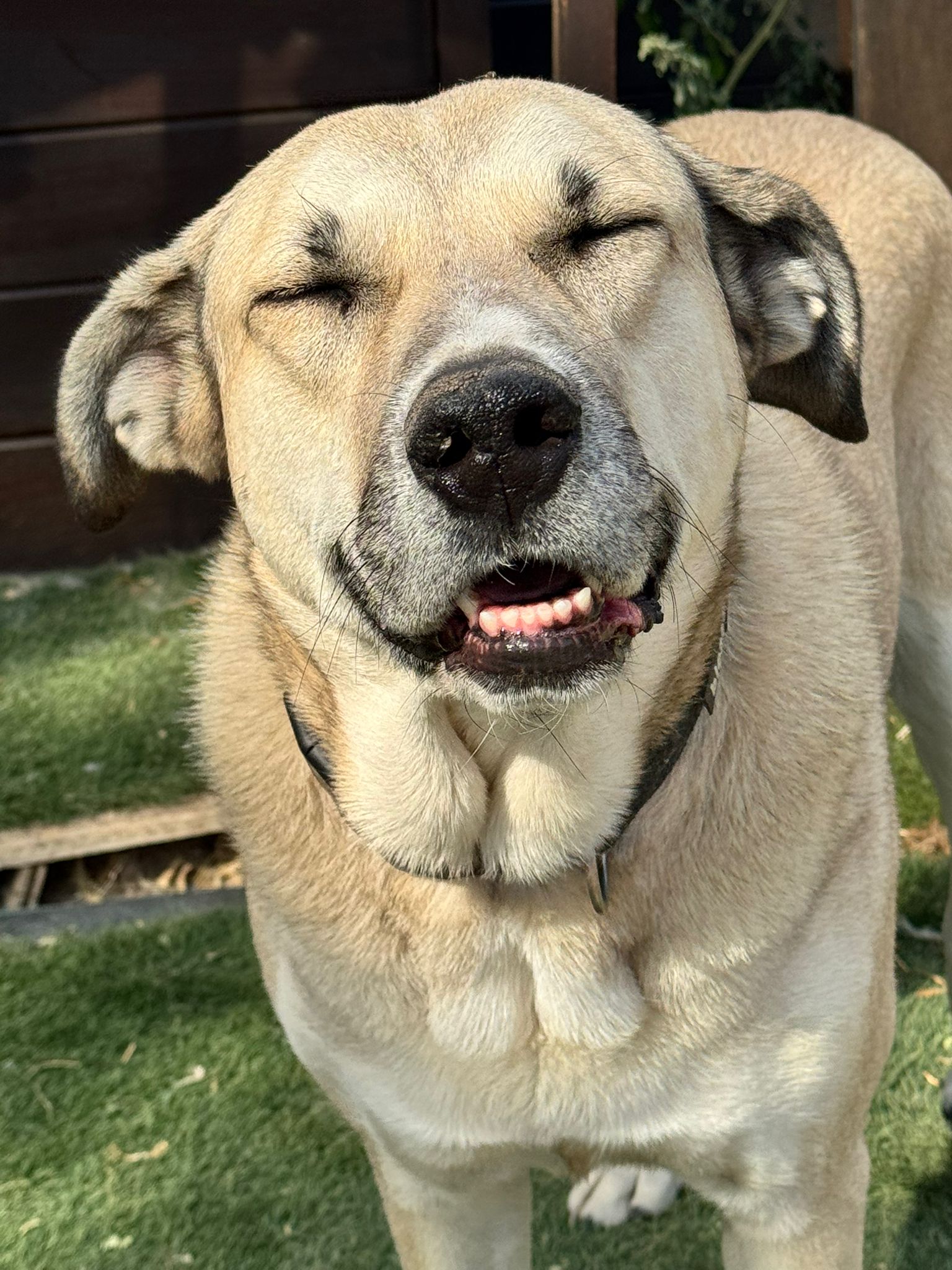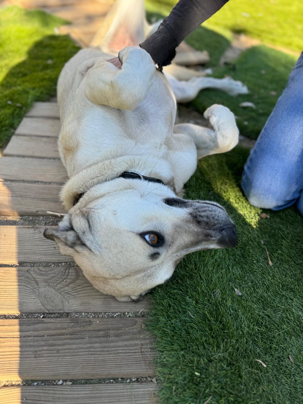 Dona nuestra leona; ella es una perrita superalegre, divertida, mimosa, juguetona y juega con todos los perritos.