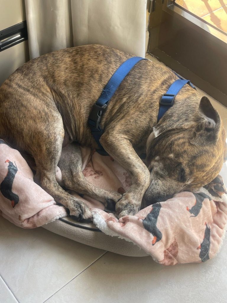 Eli es una abuelita muy cariñosa y mimosa; es una perrita fuerte, divertida, valiente, segura y sobre todo le gusta disfrutar de la compañía de las personas. Es muy obediente y noble. Lo único que quiere es formar parte de una familia de verdad. Pasea muy bien con correa, le gusta acompañarte a todas partes y viaja en el coche sin problema ninguno. Sabemos que su adopción va a ser complicada debido a los prejuicios de su raza y su aspecto, pero de verdad que es una abuelita adorable, con energía y ganas de seguir viviendo aventuras.