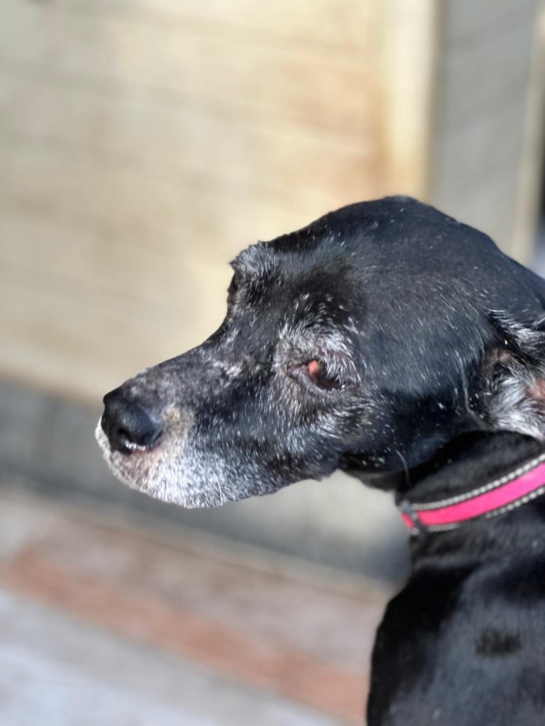 A su llegada se le administraron los tratamientos que necesitaba para tratar su leishmania, su afectación cutánea y ocular, y a día de hoy está físicamente mucho mejor. No parece el mismo animal: corre, juega con los otros perros, salta… El único problema que tiene es una cojera en una de sus patas por una rotura ligamentosa que está pendiente de ser valorada por el traumatólogo para decidir actitud terapéutica. Es un ser bueno, obediente, es cariñosa y tranquila.