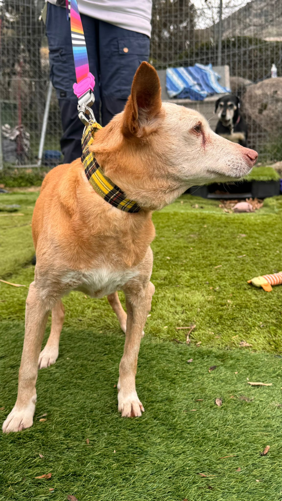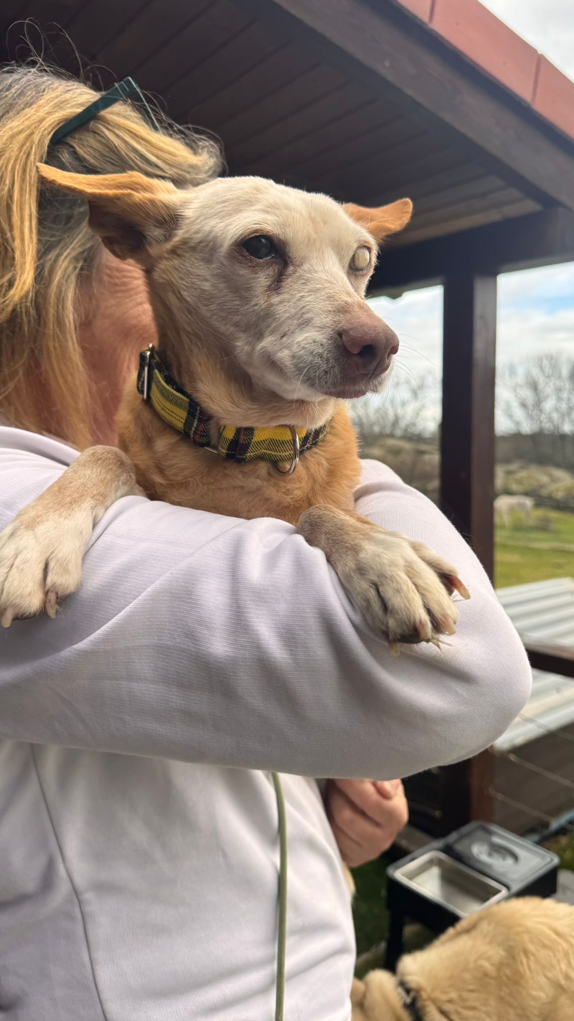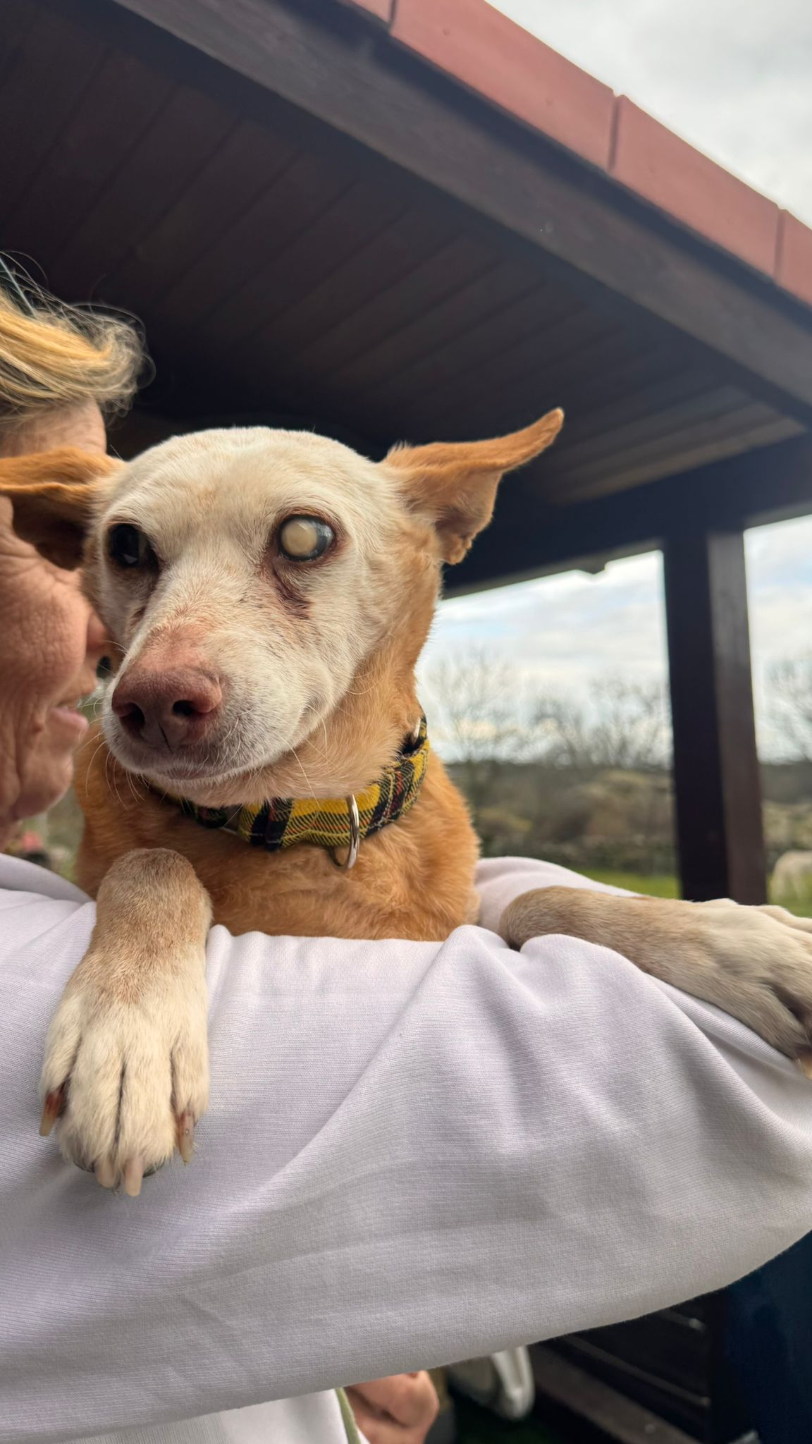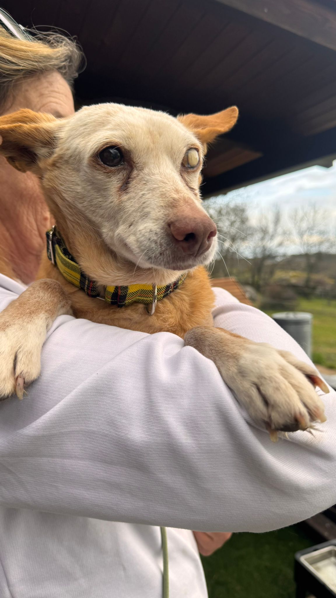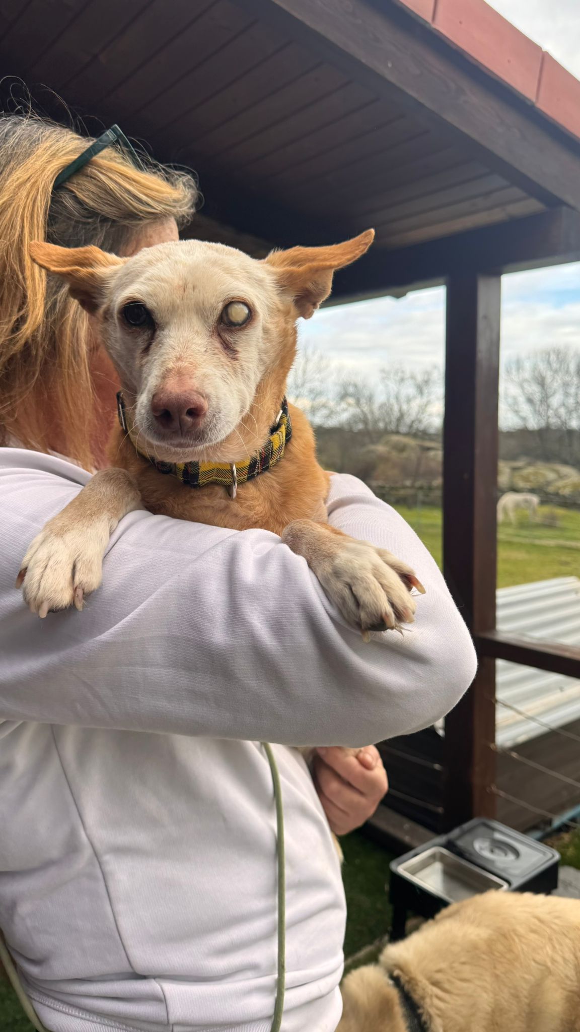 Ella viene de una larga vida de trabajo y es que es una abuela de las buenas; segura de sí misma, confiada con la gente, buena con los perros. Se deja manipular y coger en brazos.