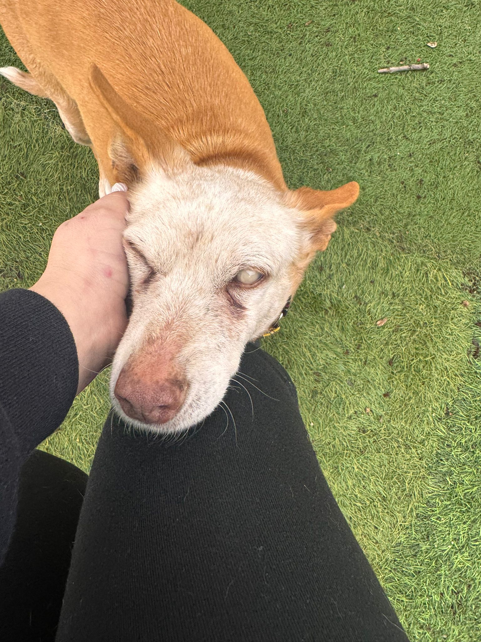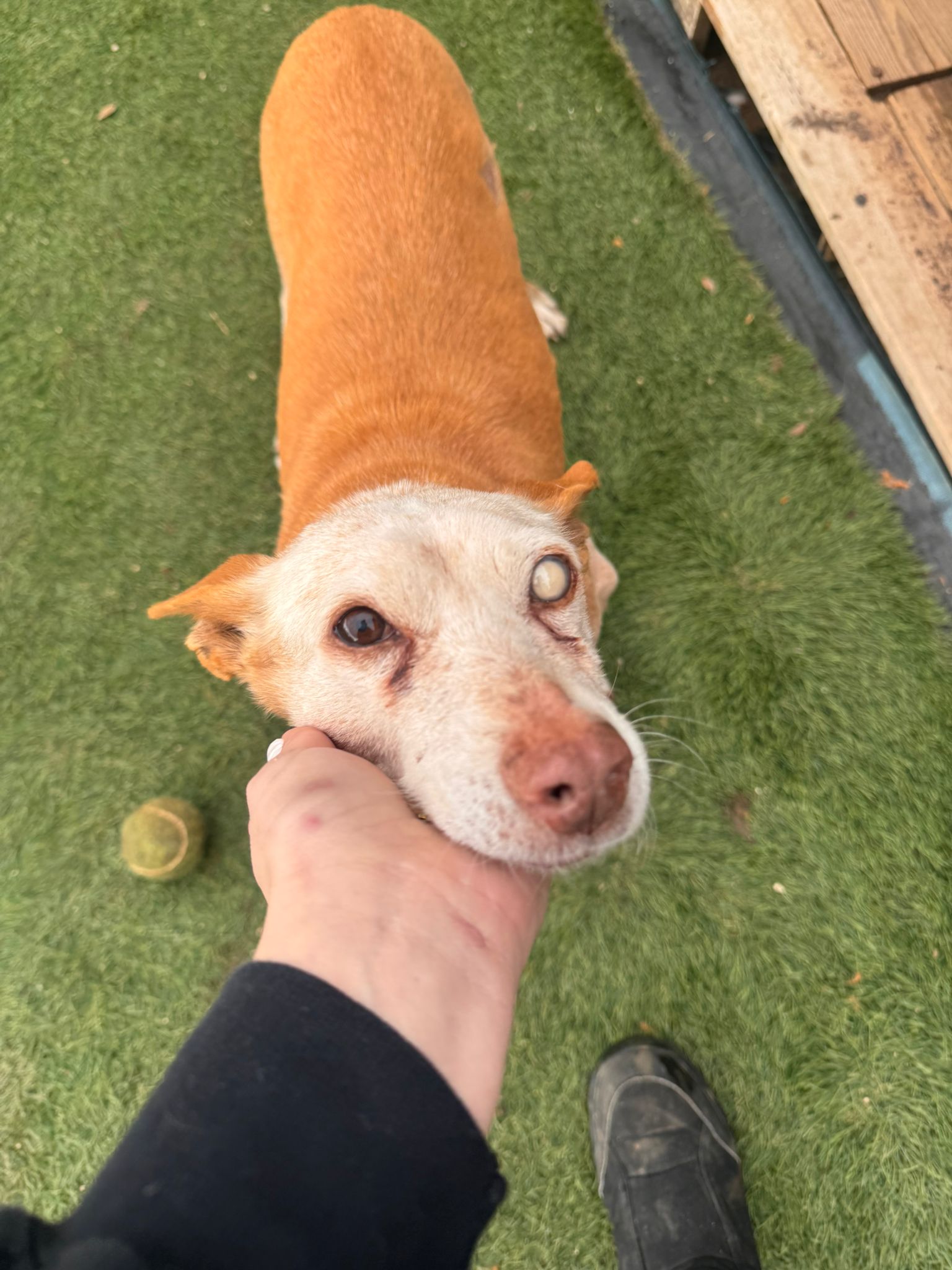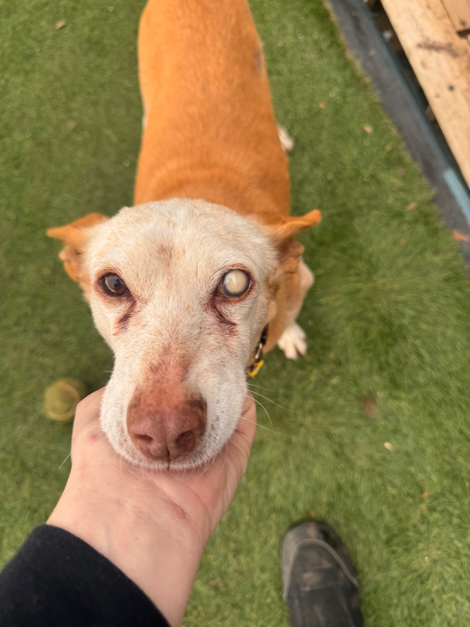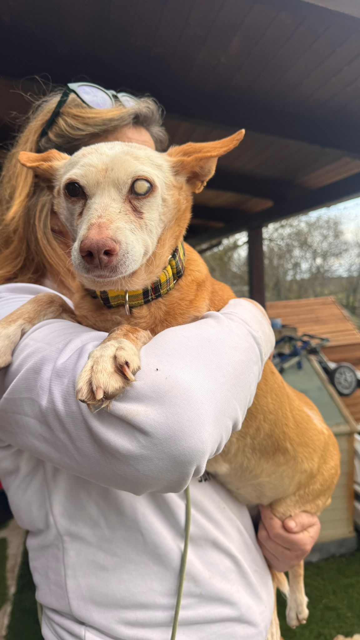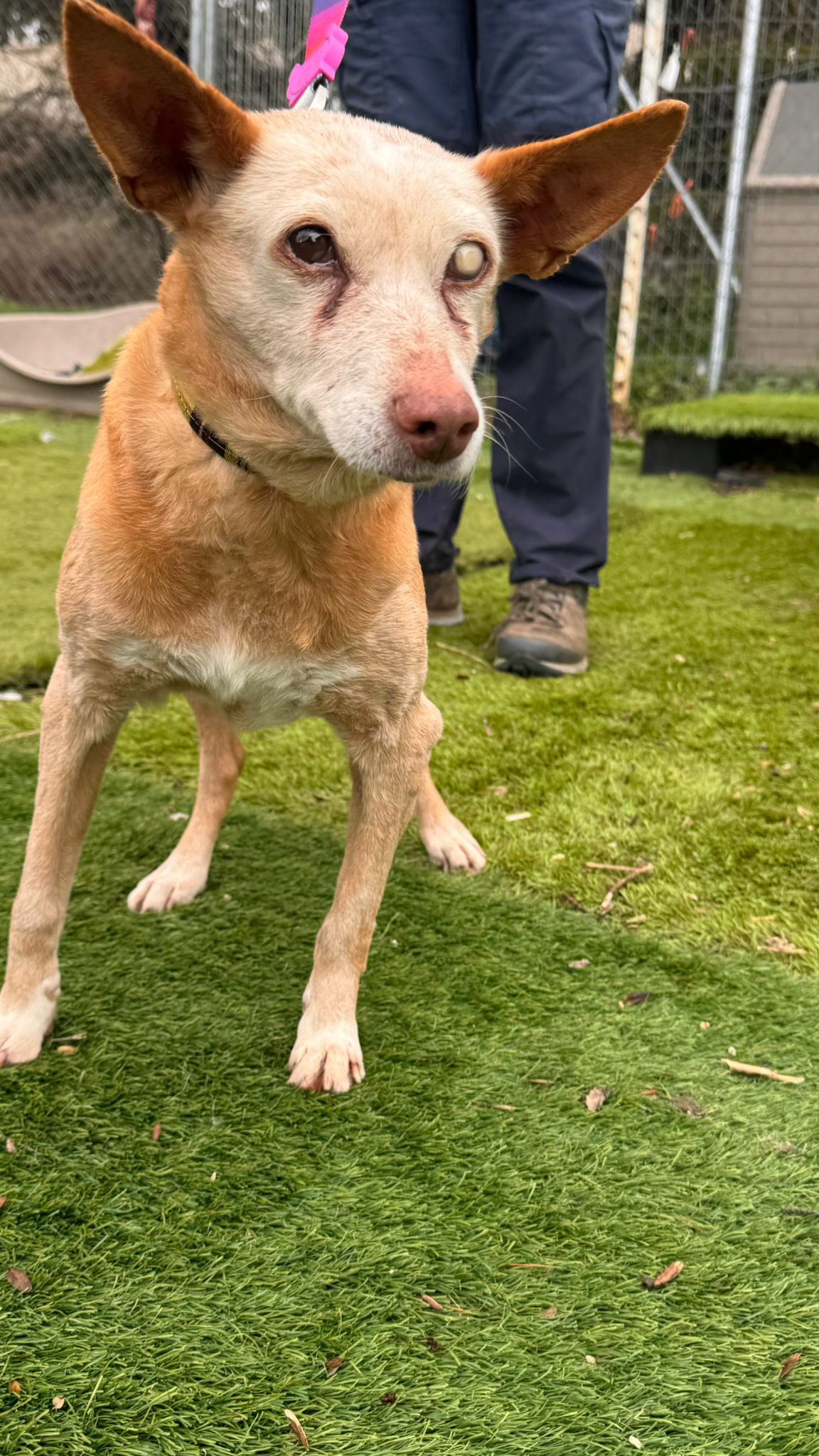 Ella viene de una larga vida de trabajo y es que es una abuela de las buenas; segura de sí misma, confiada con la gente, buena con los perros. Se deja manipular y coger en brazos.