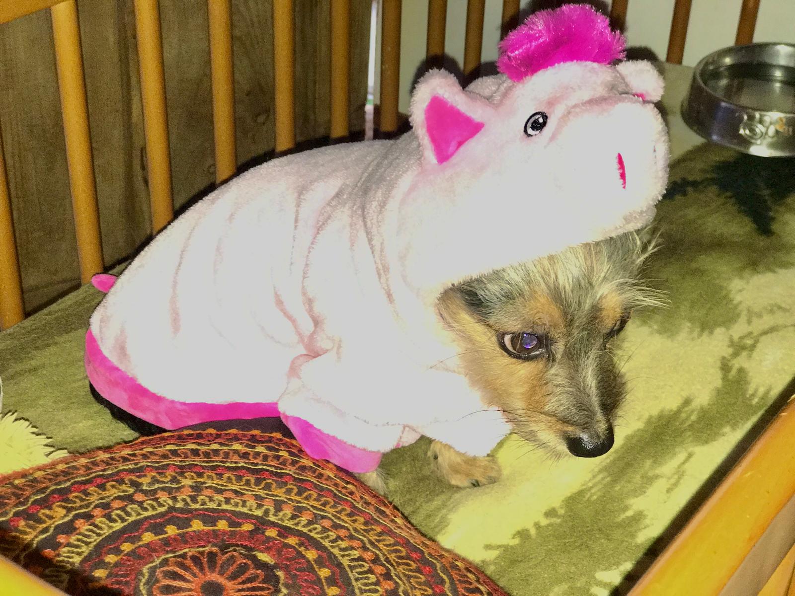Kike, hoy es nuestro cerdito particular; está para comérselo de lo mono que está.