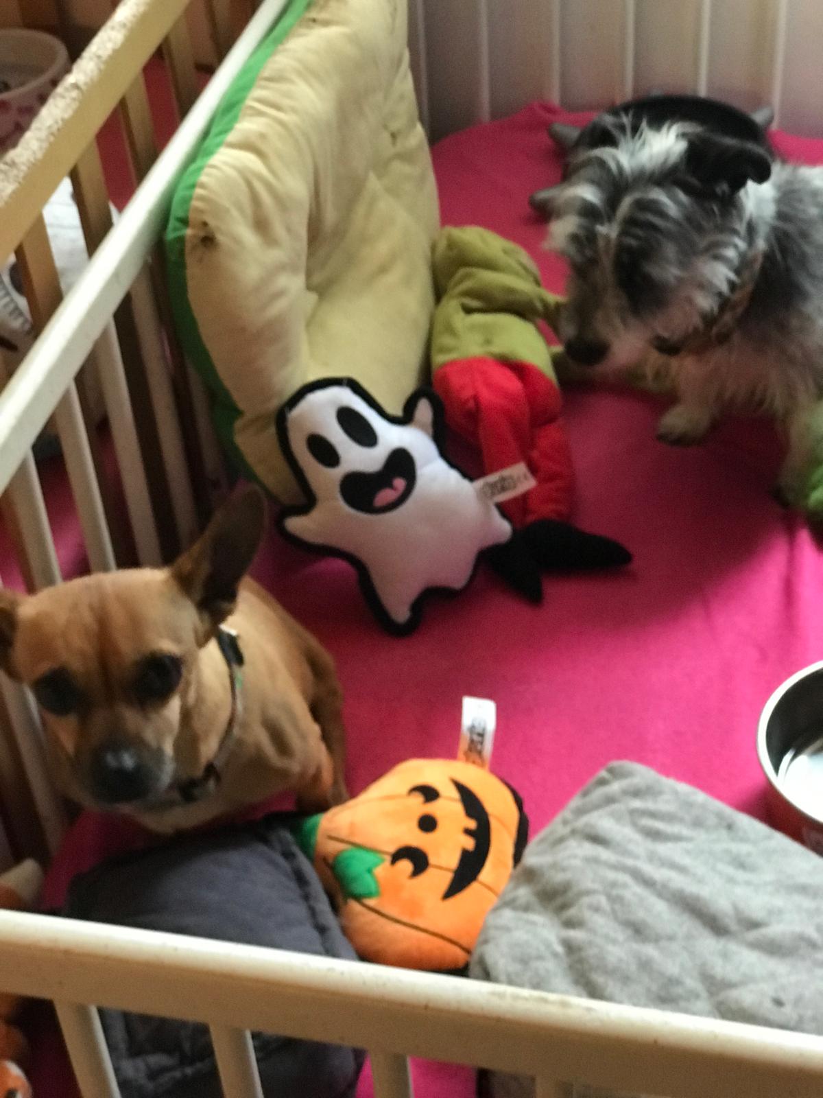 Algunos han decidido, en vez de disfrazarse, hacerse fotos con decoración de Halloween, pero nos vale igual; mira qué guapos. ¡Alguno incluso se puso a jugar con la decoración! Mira qué son traviesos.