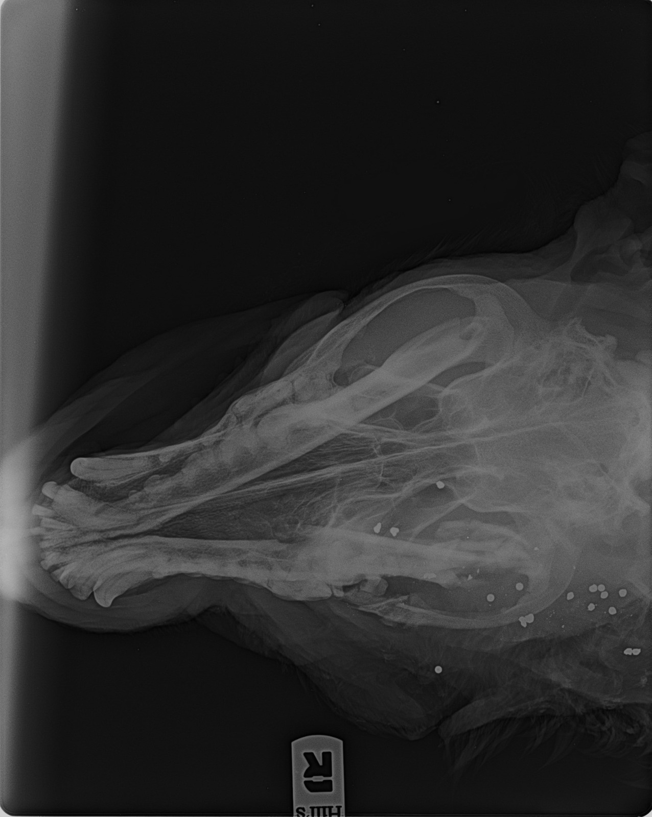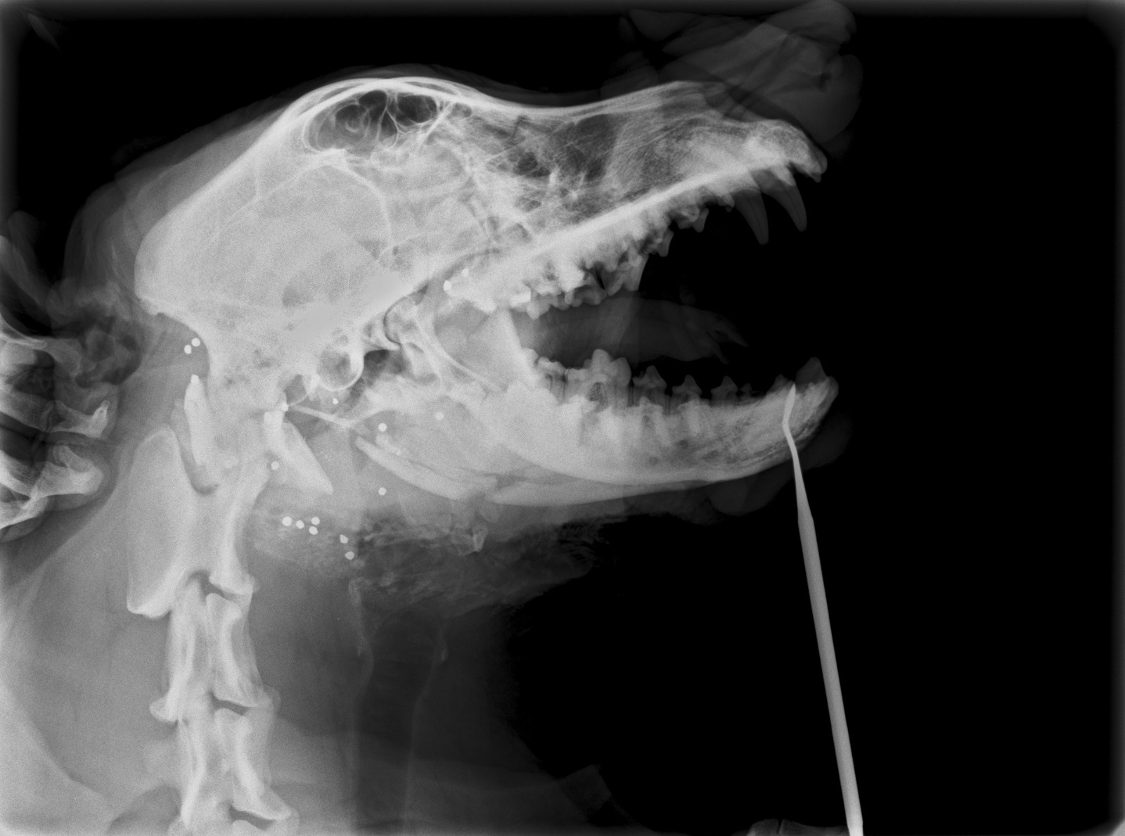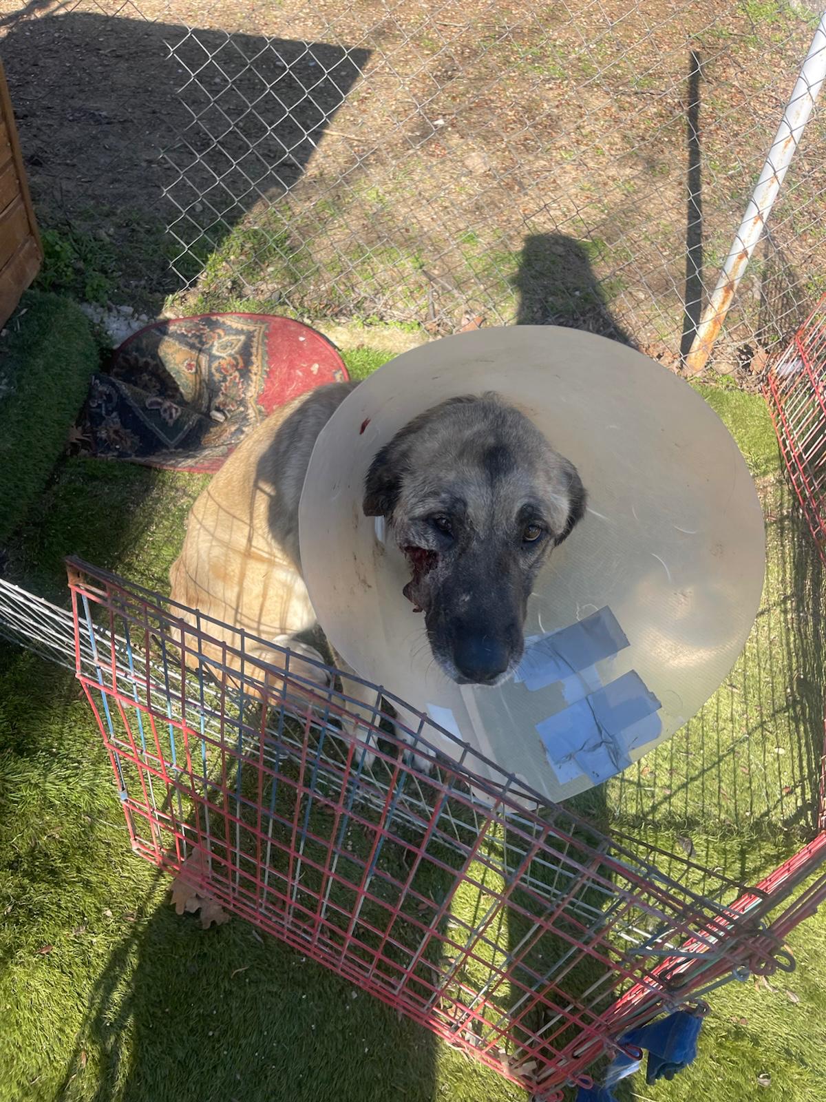 Al día siguiente fue llevada al hospital veterinario donde le realizaron una intervención quirúrgica para valoración del daño, limpieza exhaustiva de la herida y cierre parcial de la misma dejando drenaje. La infección de la herida era tan grave que no pudieron hacer más. Por el momento, LUZ está recibiendo tratamiento antibiótico intensivo, antiinflamatorios y analgésicos para control de la infección y, según evolucione, se planteará realizar otra cirugía para reparación de fractura mandibular.