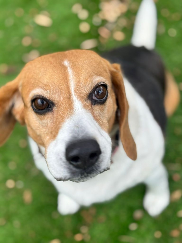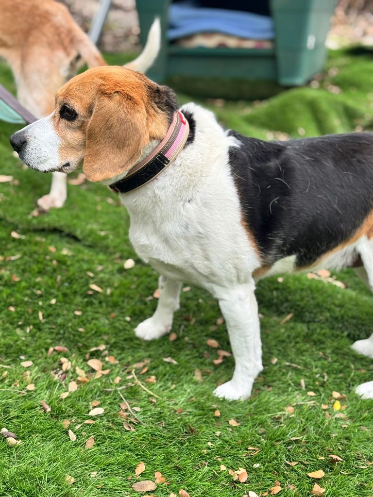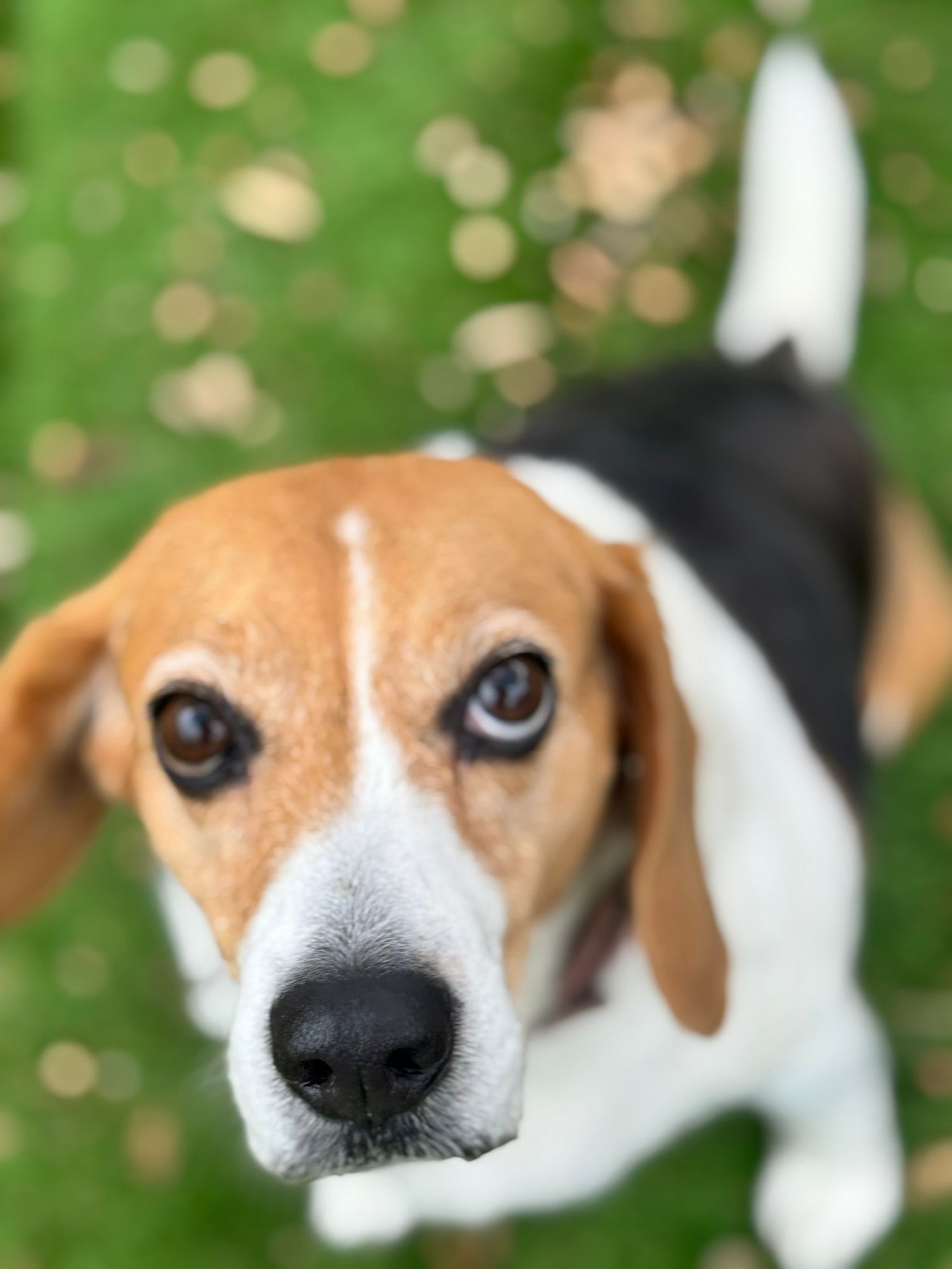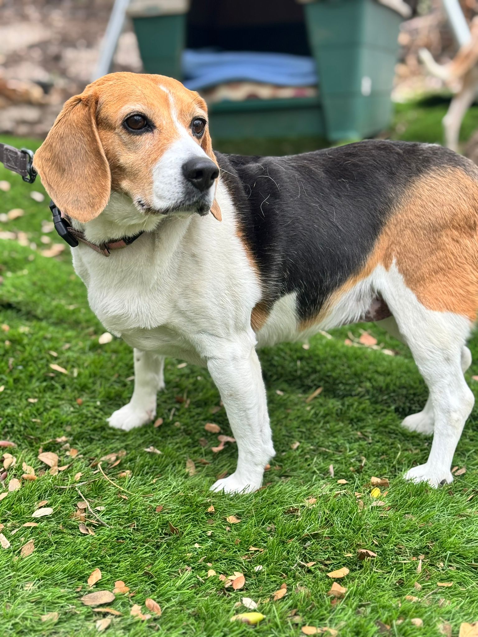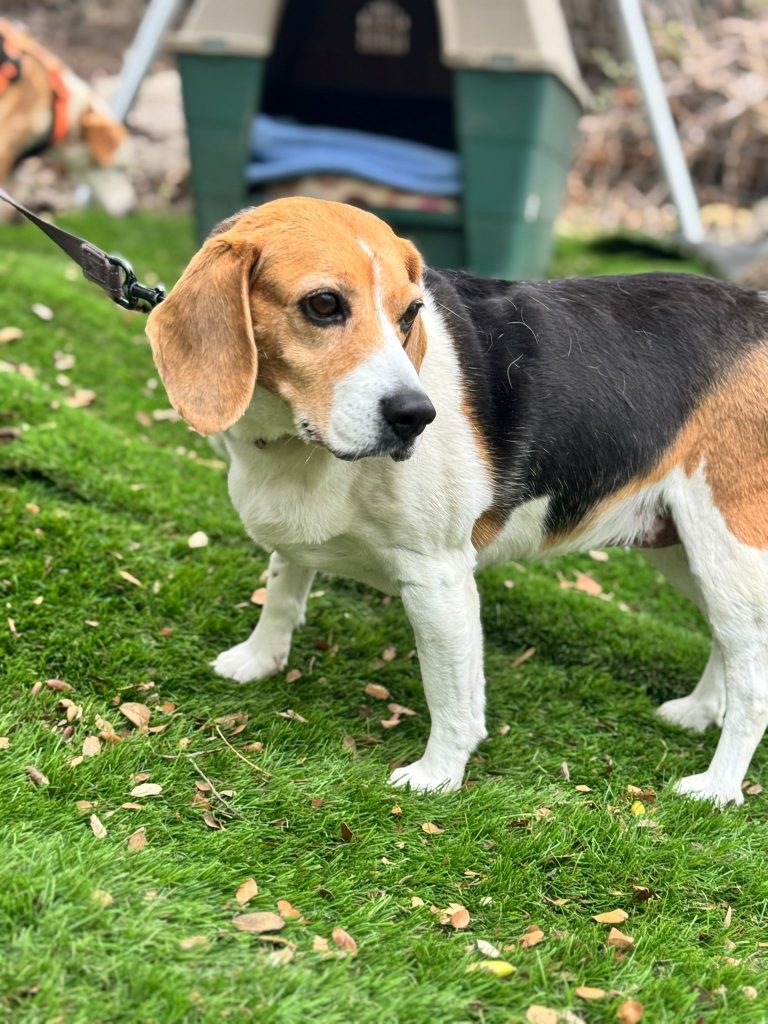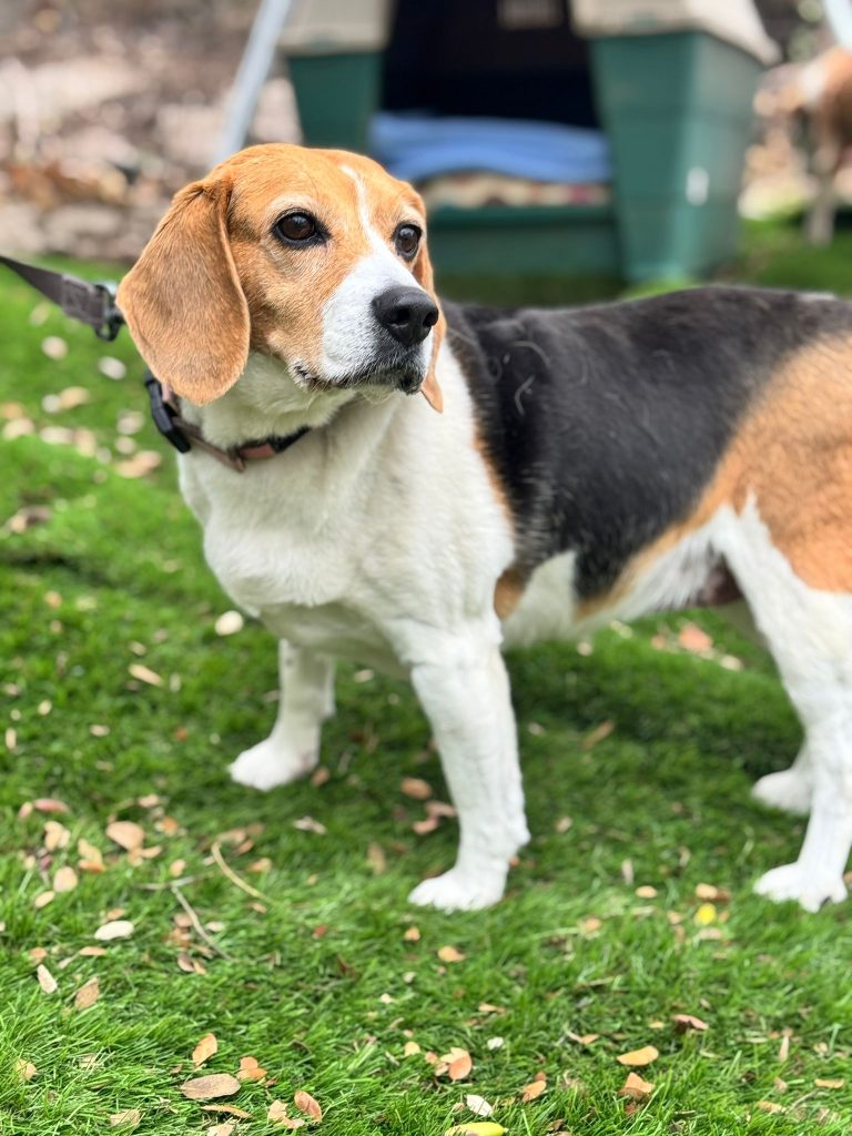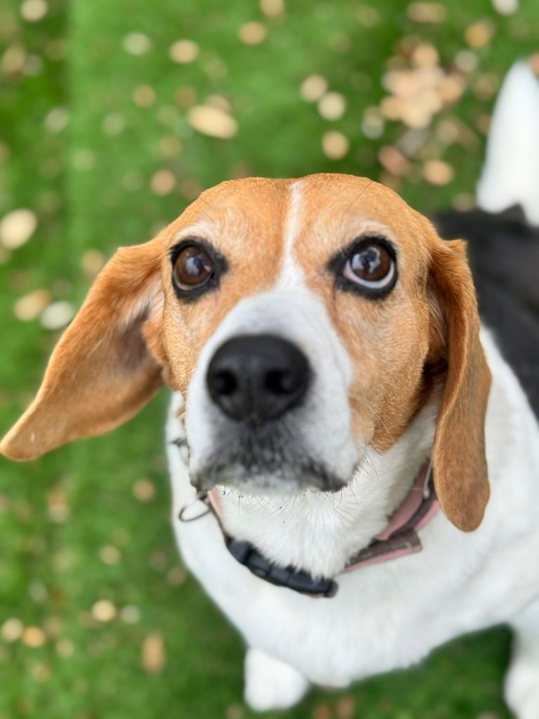 She has her little Beagle traits—she loves to bark, lifting her head and moving her ears.