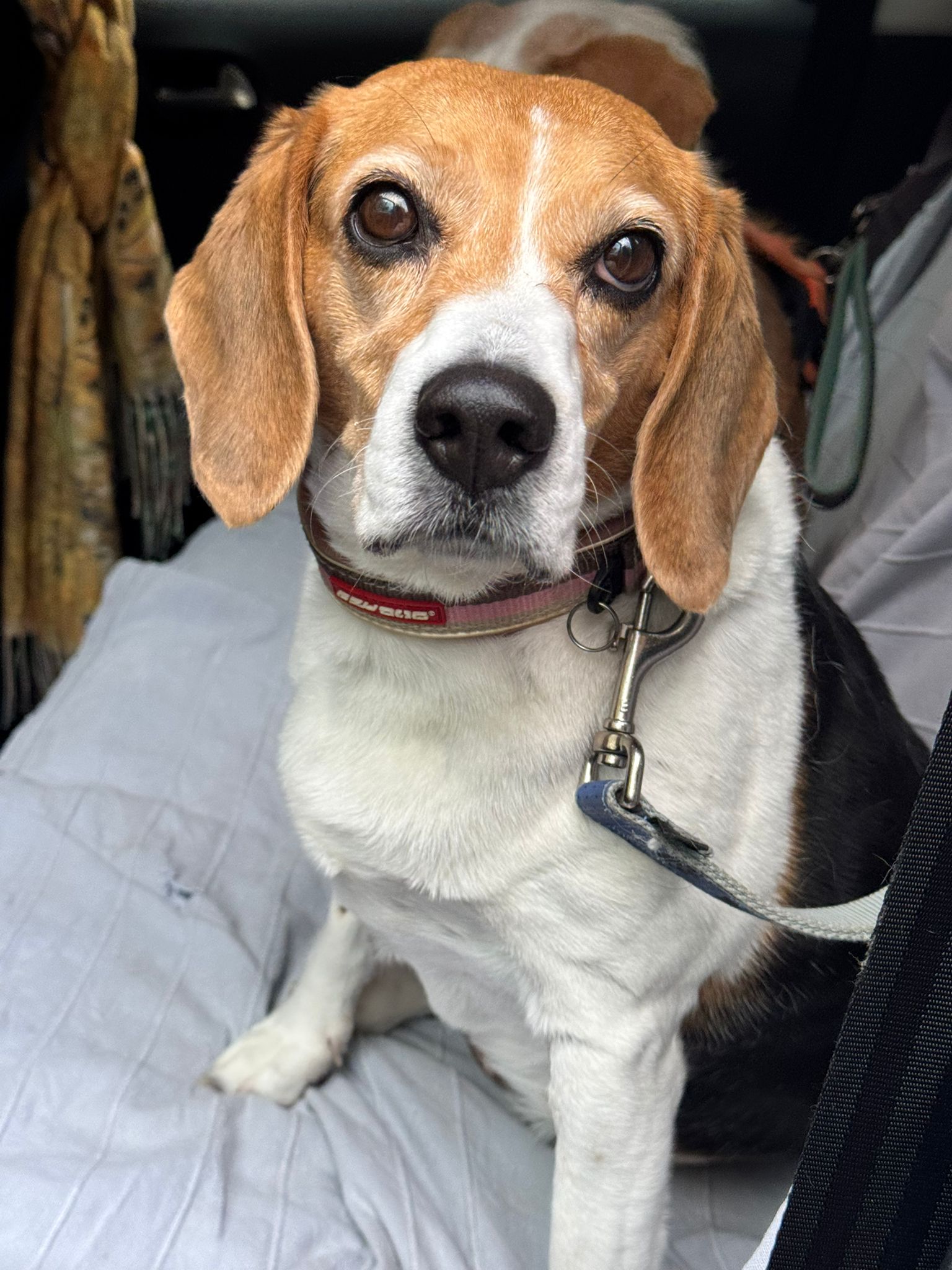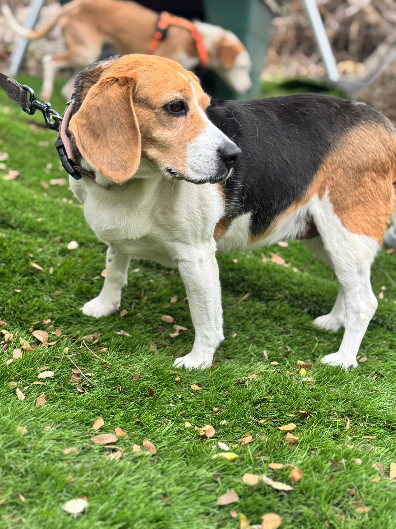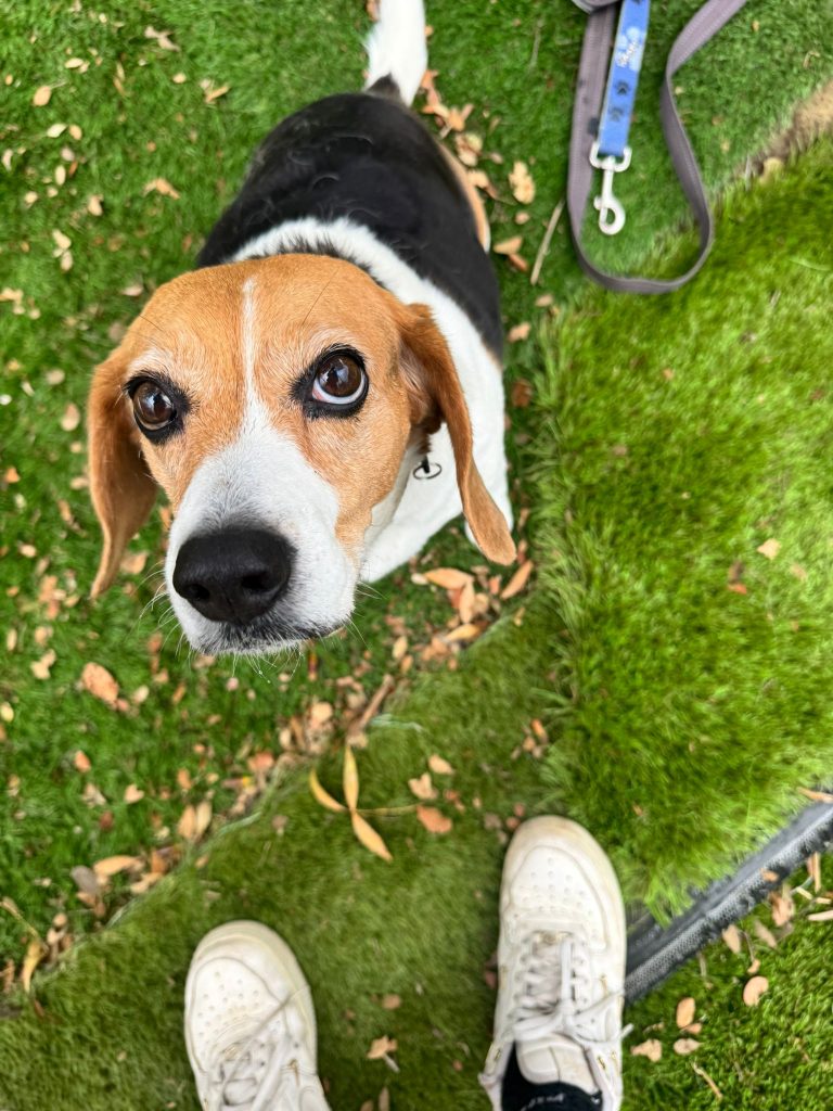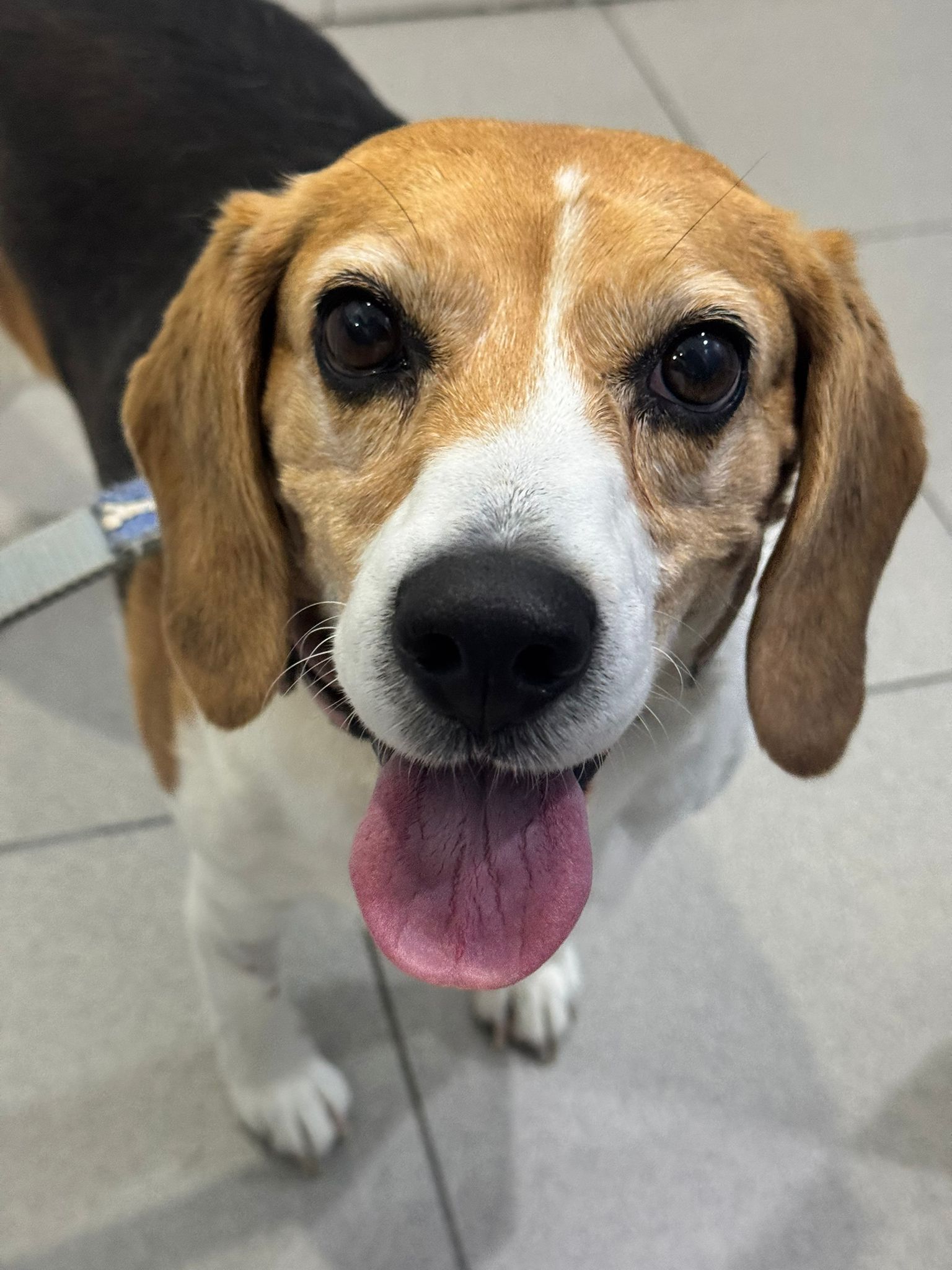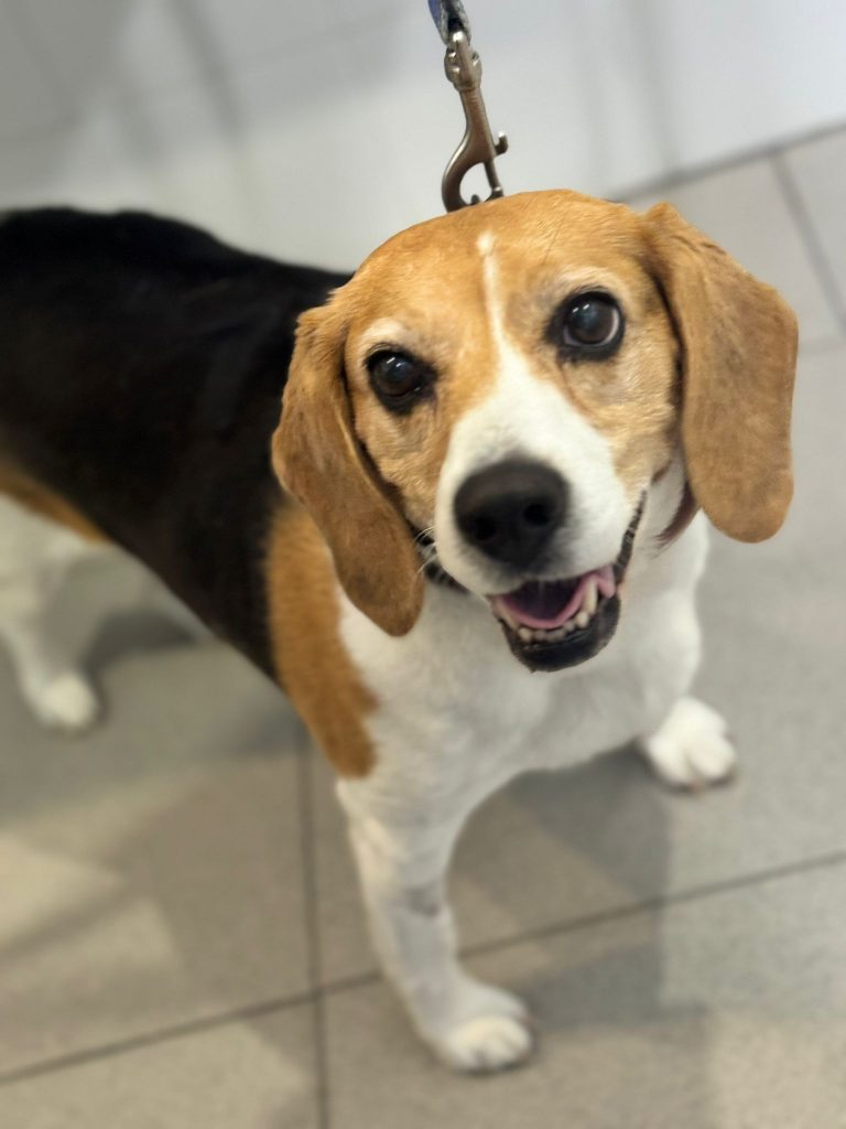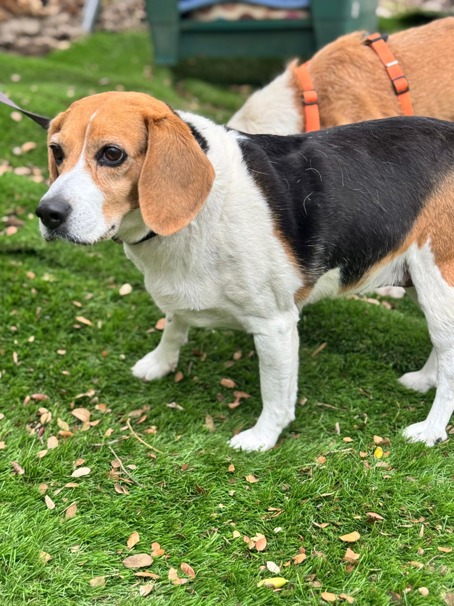 She has her little Beagle traits—she loves to bark, lifting her head and moving her ears.