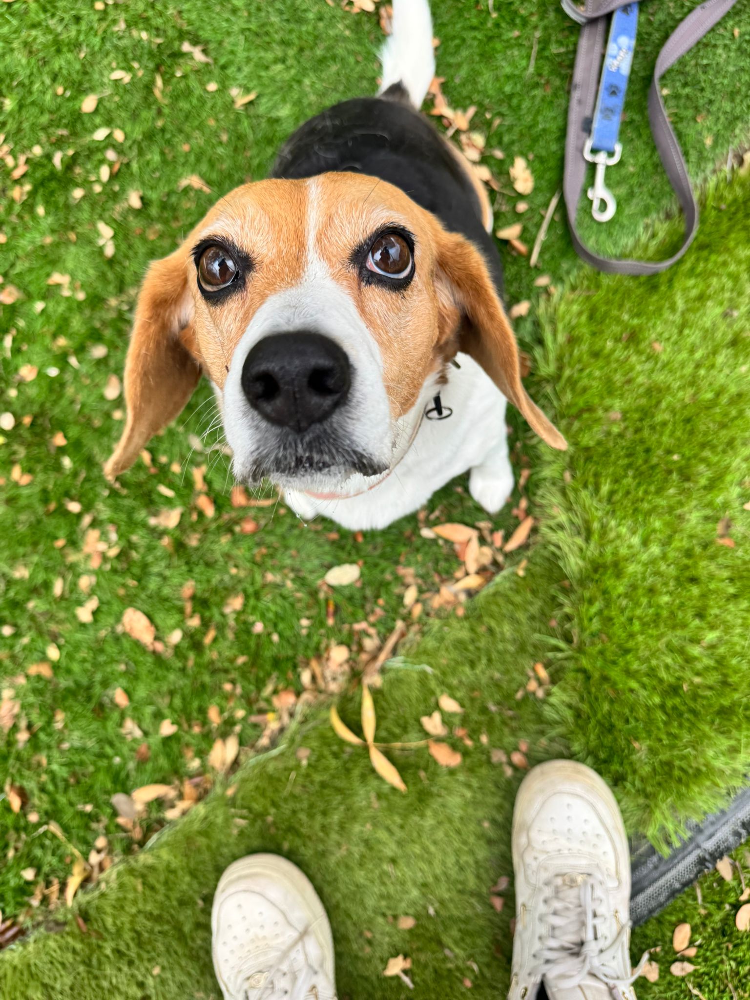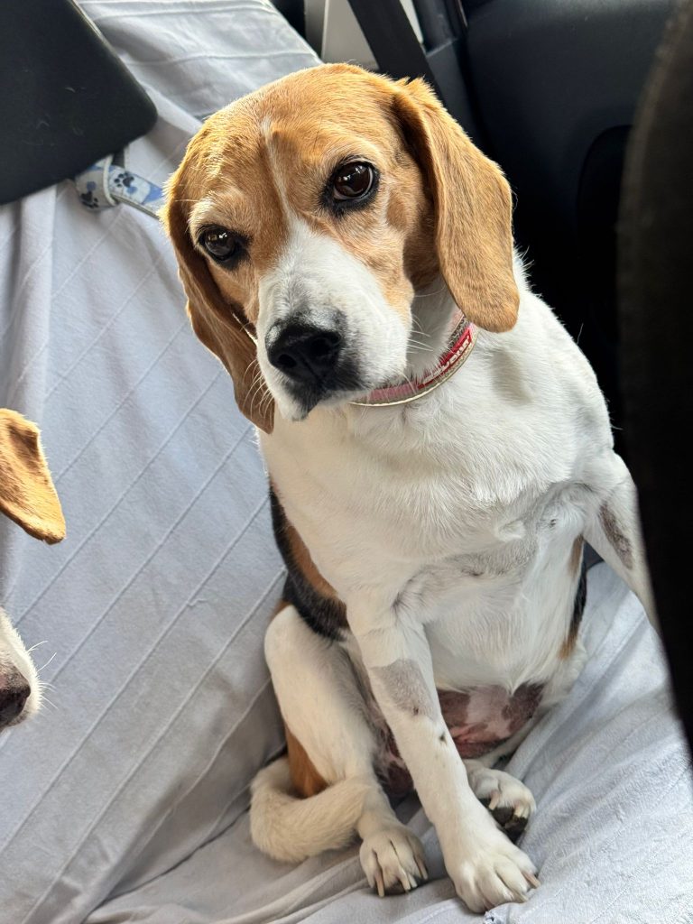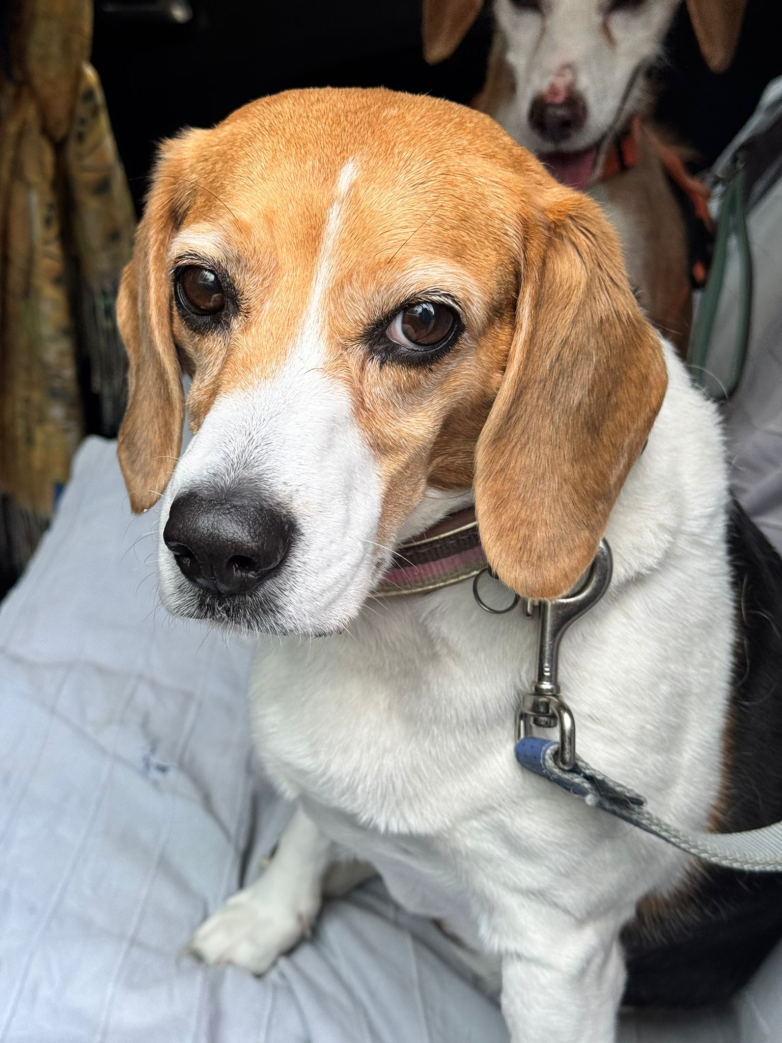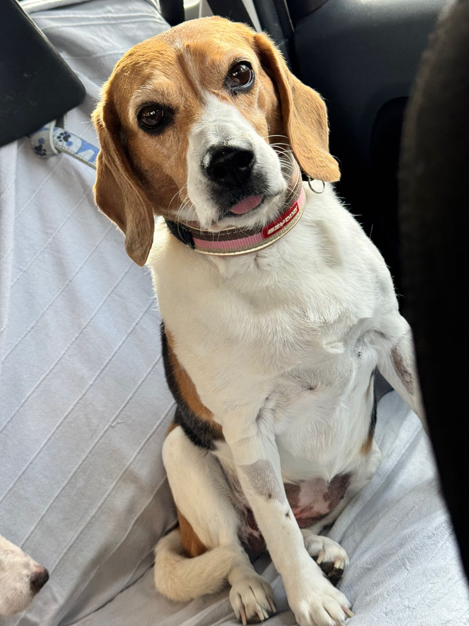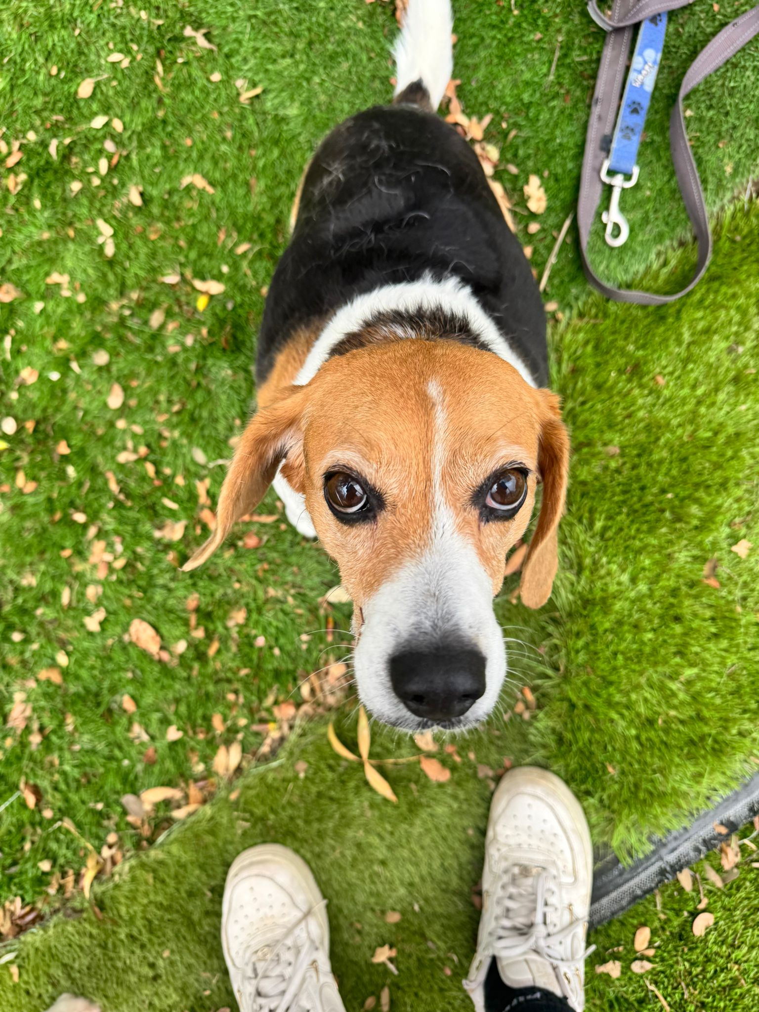 She has her little Beagle traits—she loves to bark, lifting her head and moving her ears.