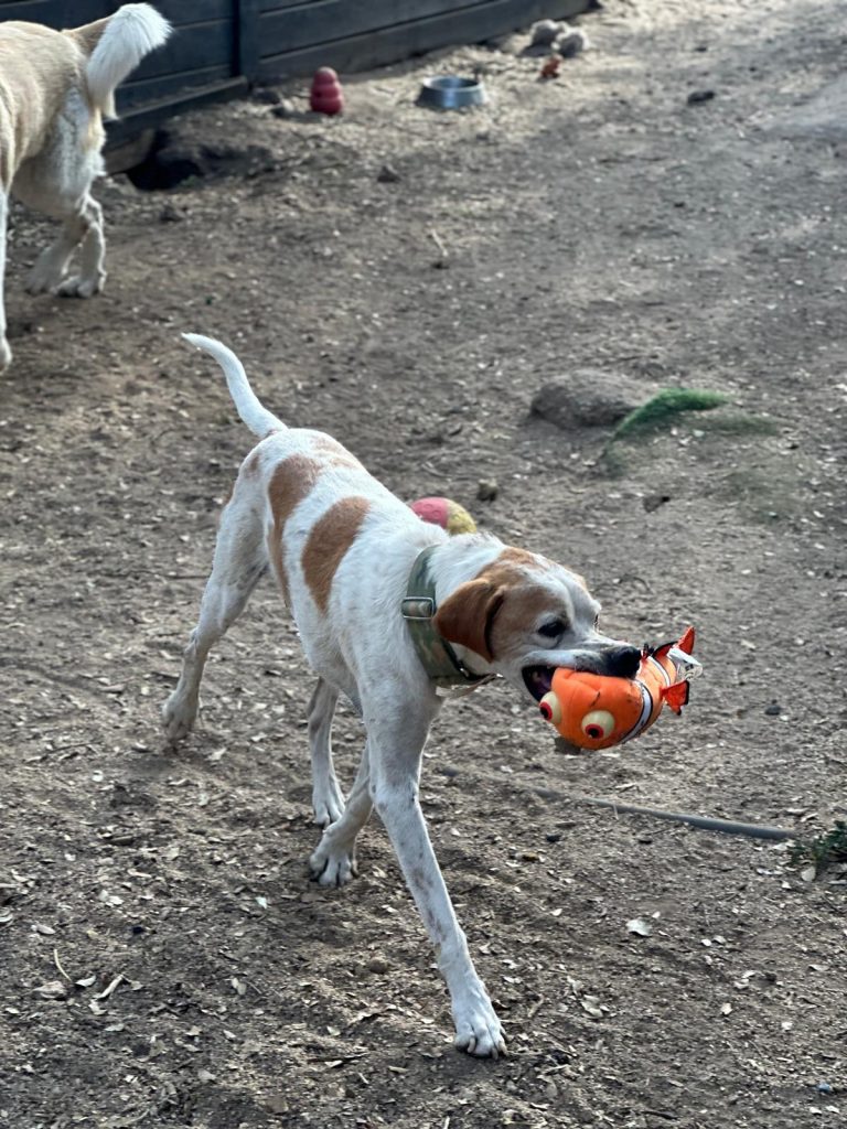 La historia de este pequeño es muy dura. JOTA es un abuelito de 10 años que fue utilizado toda su vida para cazar. Para ello le mantenían toda la semana encerrado en una jaula minúscula sin comer ni beber, en el exterior, expuesto al frío y al calor, hasta que llegaba el día de caza y le sacaban. Y así fue su vida desde que era prácticamente un cachorro. Debido a su edad y a que ya no cazaba como cuando era joven, fue abandonado en un pueblo donde sus habitantes le maltrataron, le soltaban a sus perros para que le atacaran y le pegaban.