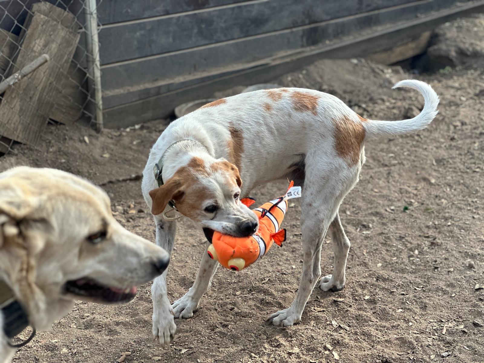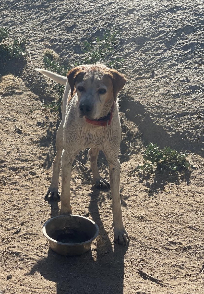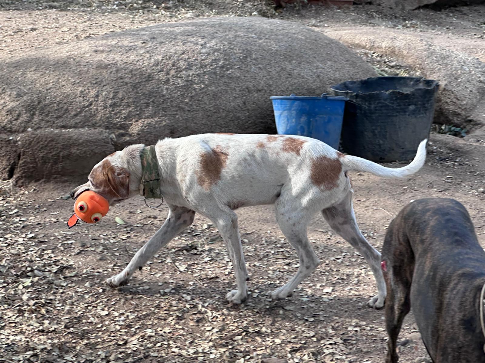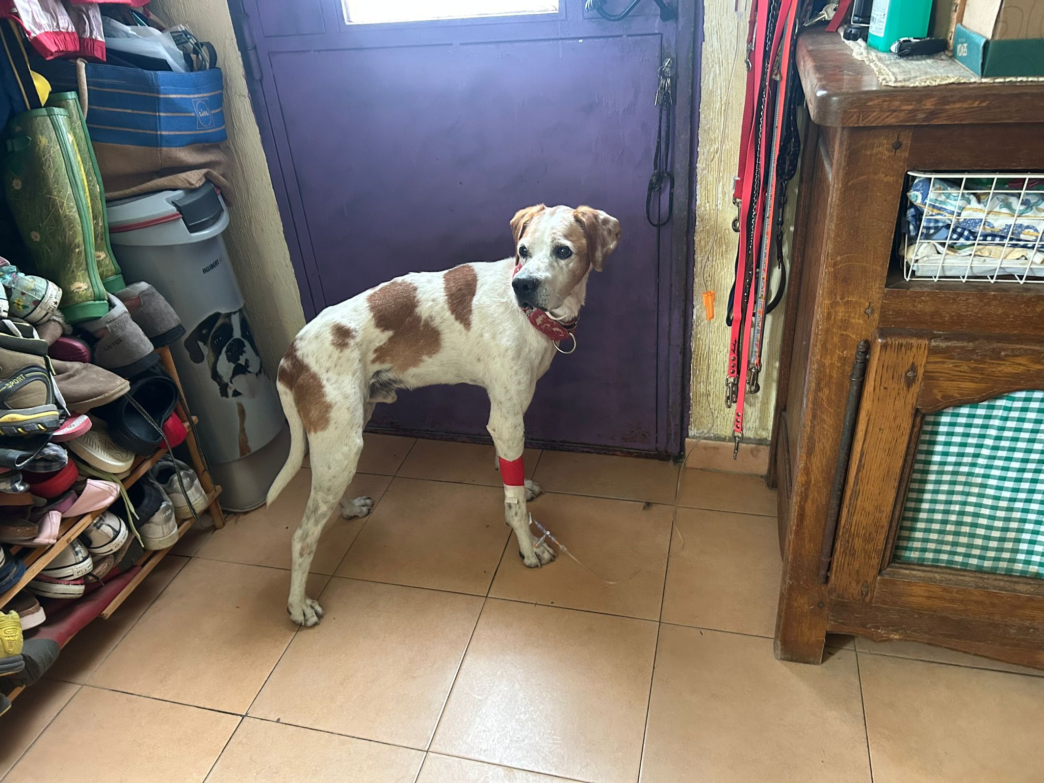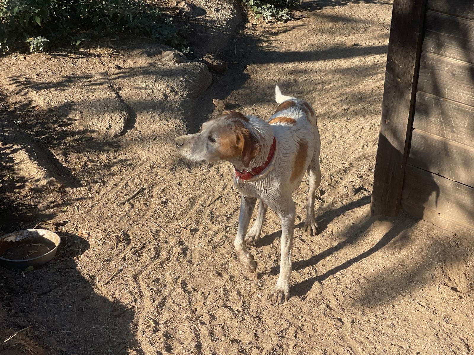 La historia de este pequeño es muy dura. JOTA es un abuelito de 10 años que fue utilizado toda su vida para cazar. Para ello le mantenían toda la semana encerrado en una jaula minúscula sin comer ni beber, en el exterior, expuesto al frío y al calor, hasta que llegaba el día de caza y le sacaban. Y así fue su vida desde que era prácticamente un cachorro. Debido a su edad y a que ya no cazaba como cuando era joven, fue abandonado en un pueblo donde sus habitantes le maltrataron, le soltaban a sus perros para que le atacaran y le pegaban.