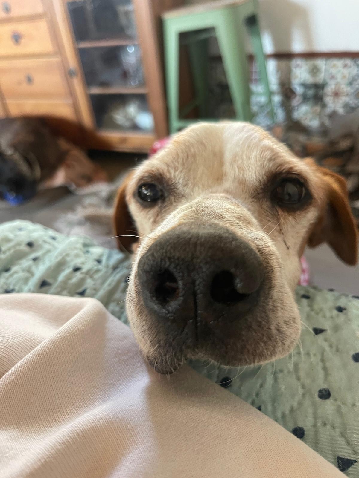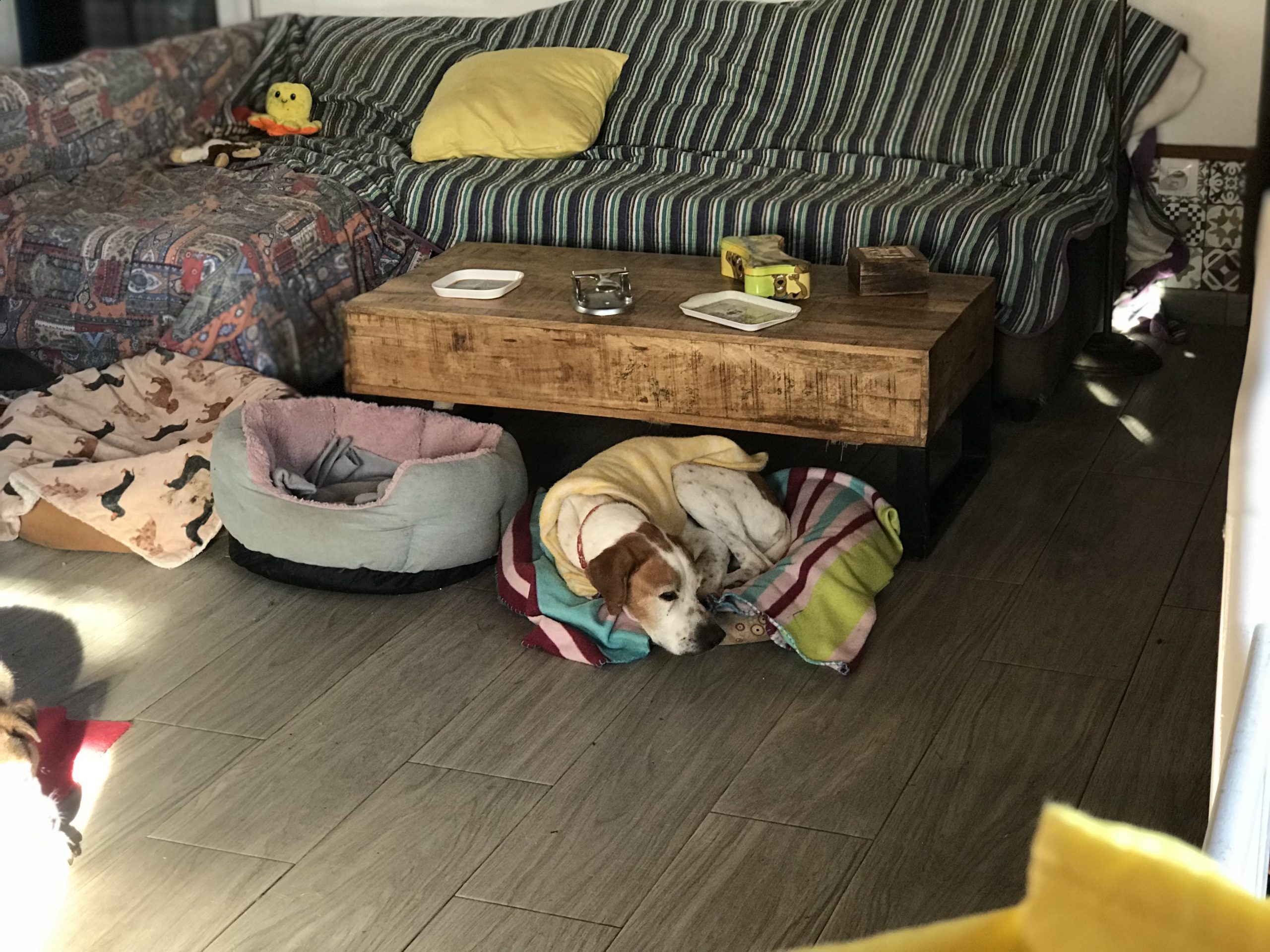 Llegó a BICHOSRAROS con un hilo de vida porque estaba en los huesos, no hacía más que temblar de miedo y su cuerpo estaba claudicando. En el veterinario vieron que tenía un fracaso renal tremendo y no nos dieron muchas esperanzas de que sobreviviera. Sin embargo, JOTA luchó y peleó por salir adelante y a día de hoy es un perro hiperactivo, juguetón, cariñoso, aunque un poco celoso si le das mimos a otros perros. Es un ser especial que, tras todo lo que ha sufrido física y psíquicamente, está mejorando poquito a poco. A veces demuestra un carácter un poco arisco, pero es todo secundario al miedo, desconfianza y a todo el maltrato que ha sufrido.