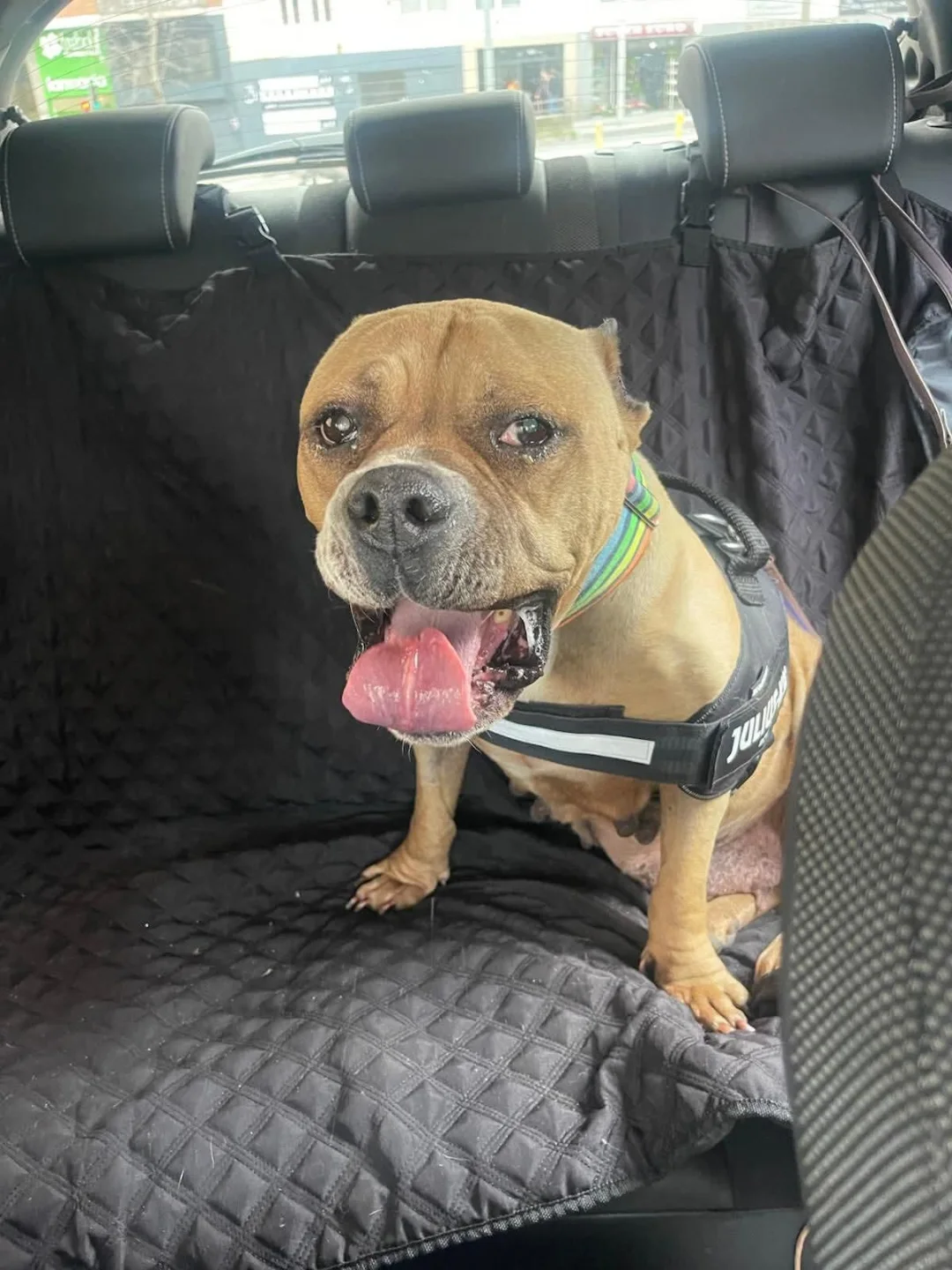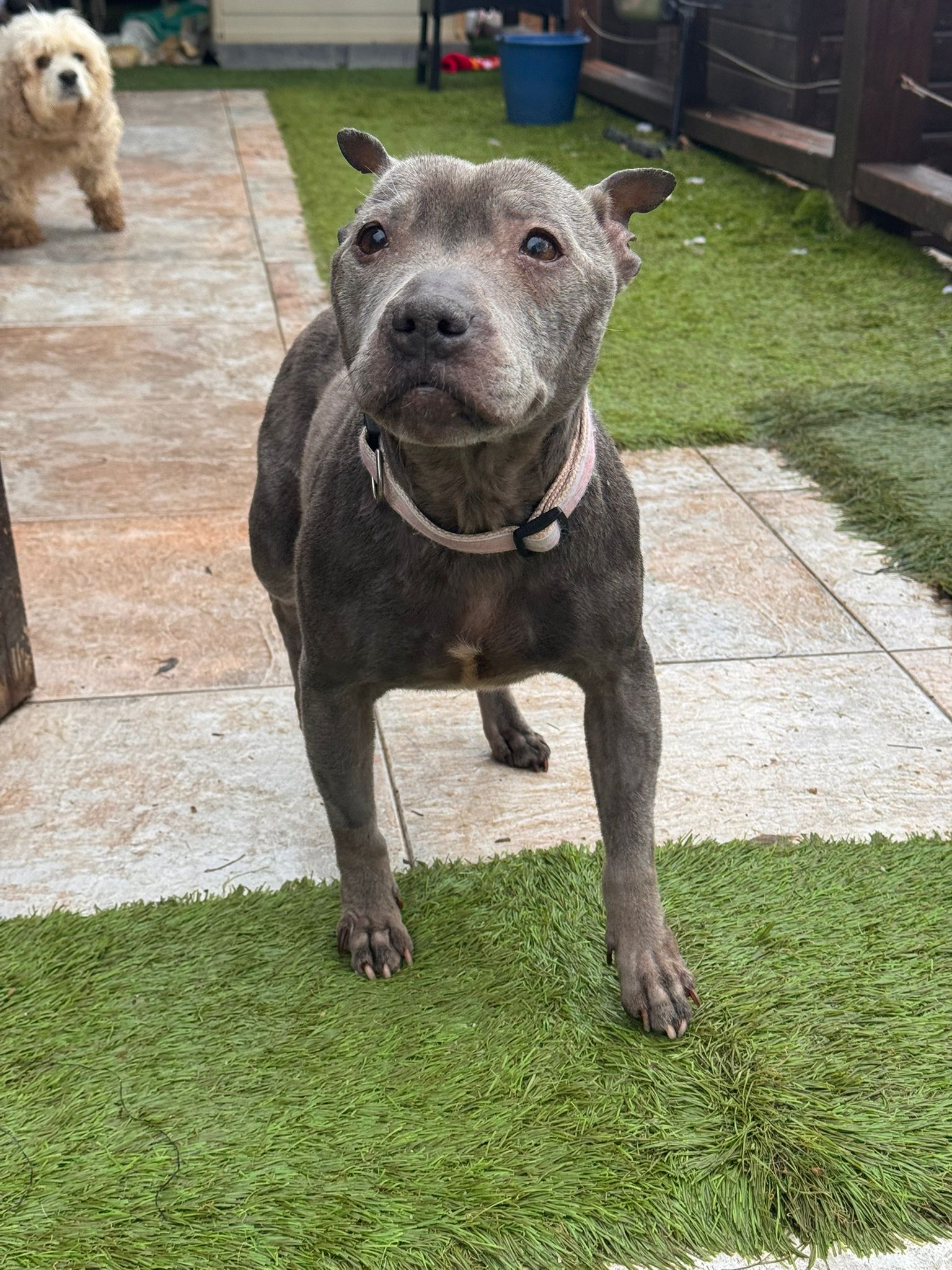 Vino de la perrera de Granada con un tumor de bazo muy feo que ya hemos operado. Está ya con tratamiento con el oncólogo para intentar alargar un pronóstico feo, de pocos meses, pero que vamos a intentar llenar de cariño.