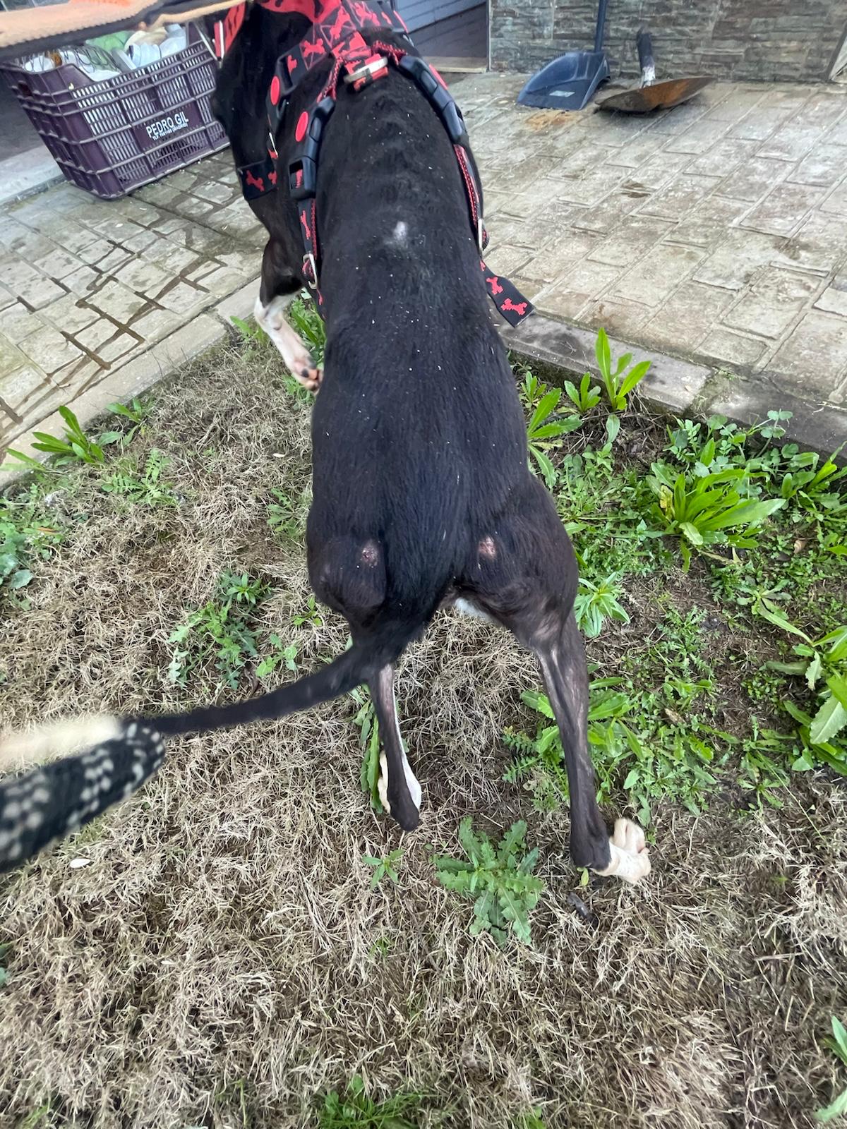 - Lina: Mix de border collie que requirió amputación de una pata tras aparecer abandonada en pleno campo con una fractura abierta e infección grave asociada que casi le cuesta la vida.