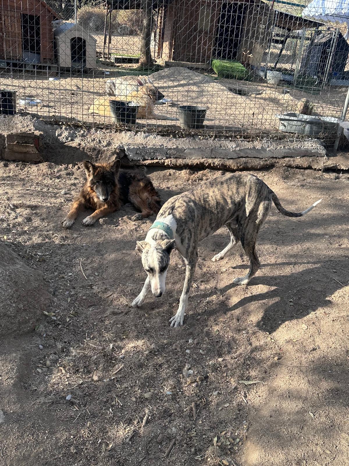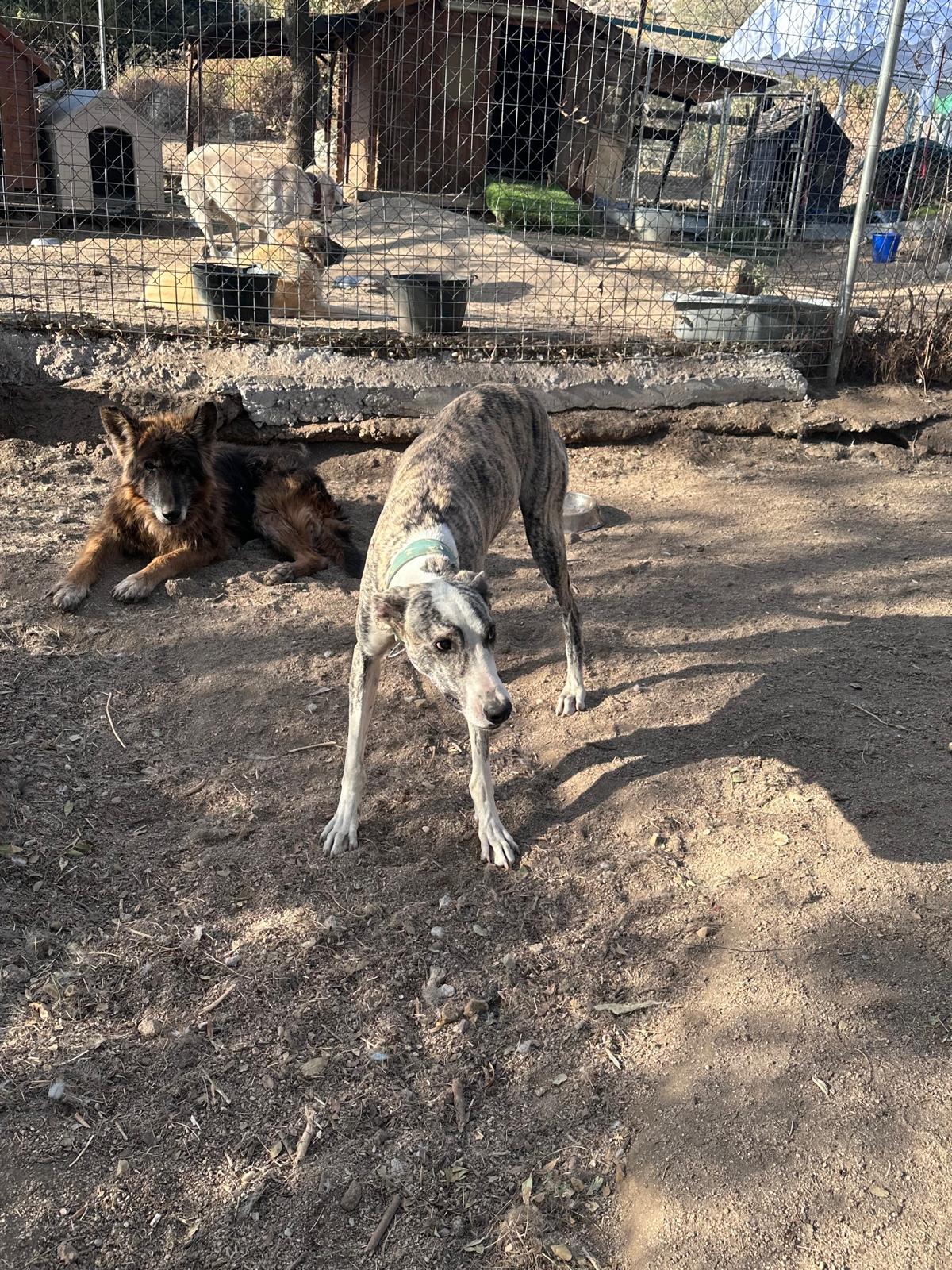 MÍSTER llegó recogido de una zona problemática, lleno de heridas por bocados, seguramente de peleas, y no se podía poner ni siquiera de pie. Allí en la perrera le curaron y le ha quedado una pequeña secuela que se ve en sus andares, pero estamos seguros que, cuidándole y queriéndole, se va a recuperar perfectamente. Es un galgo muy bueno, tiene un poquito de miedo, pero poco a poco está ganando confianza y estamos seguras de que conseguiréis encontrarle una casa estupenda.