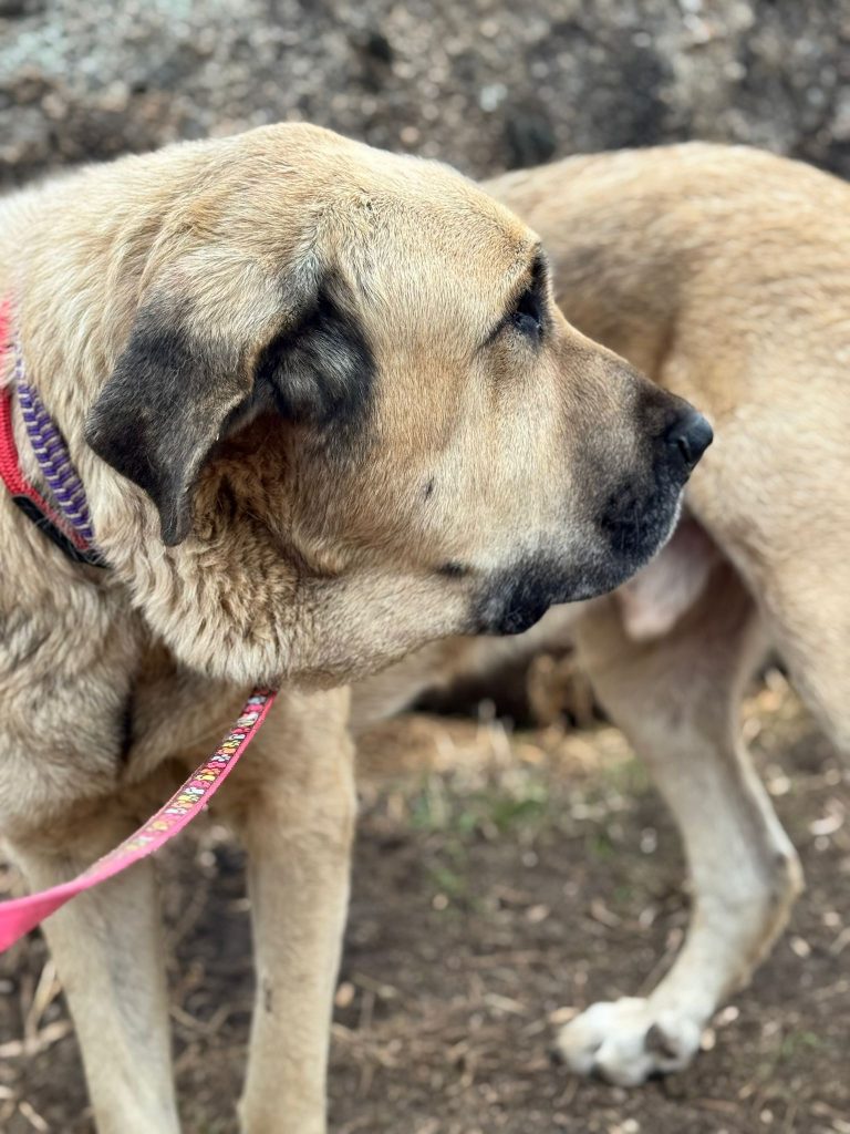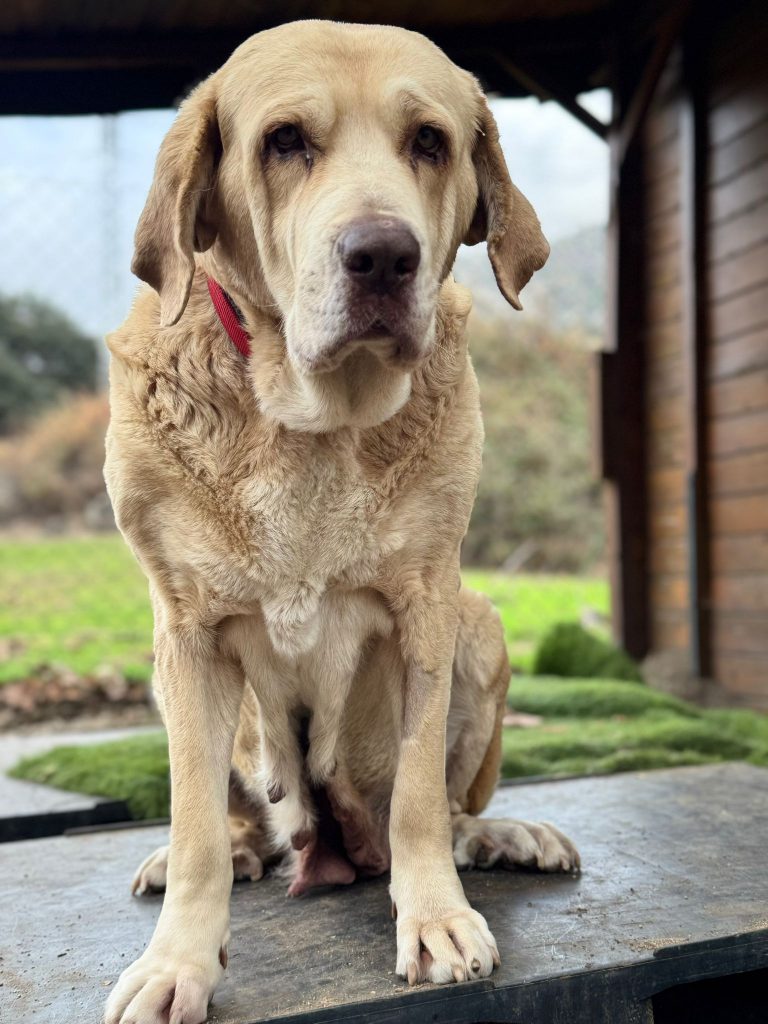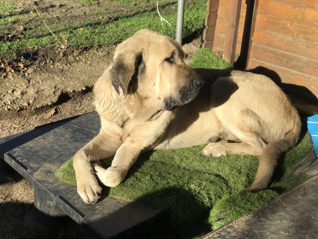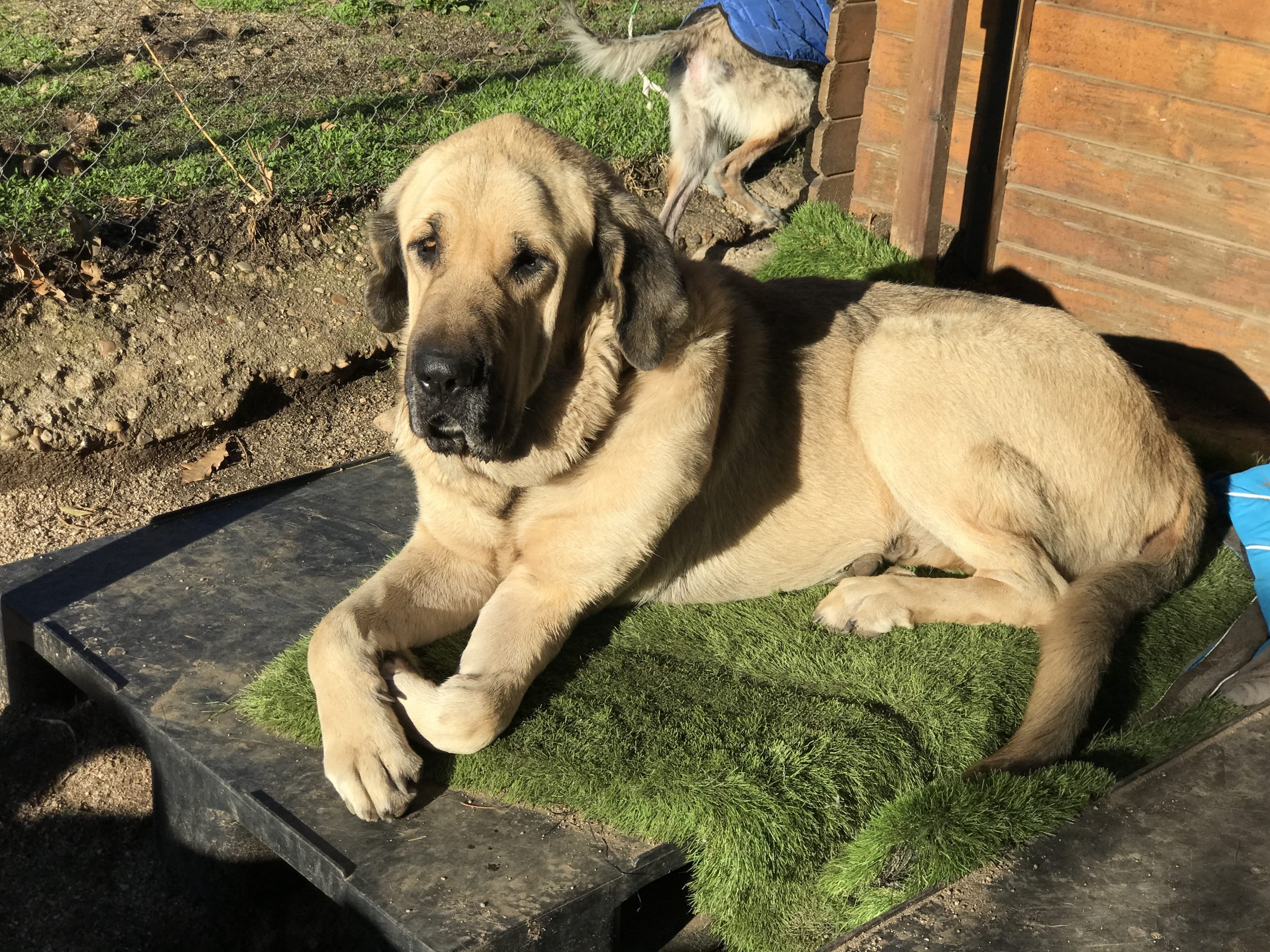 Él llega al refugio enamorado de Sharon, la enorme perrita con la que llegó; la quiere, la cuida y respeta; se tumba a su lado cuando se echa la siesta.