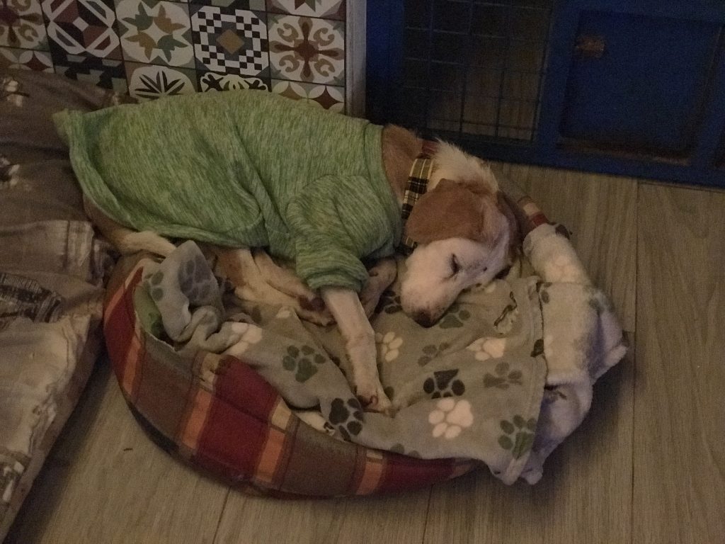 OFELIA: Nuestra dulce abuelita ha empezado a disfrutar del calor y comodidad del Refugio y ya usa sin miedo las camitas, donde le encanta dormirse hecha un ovillo.