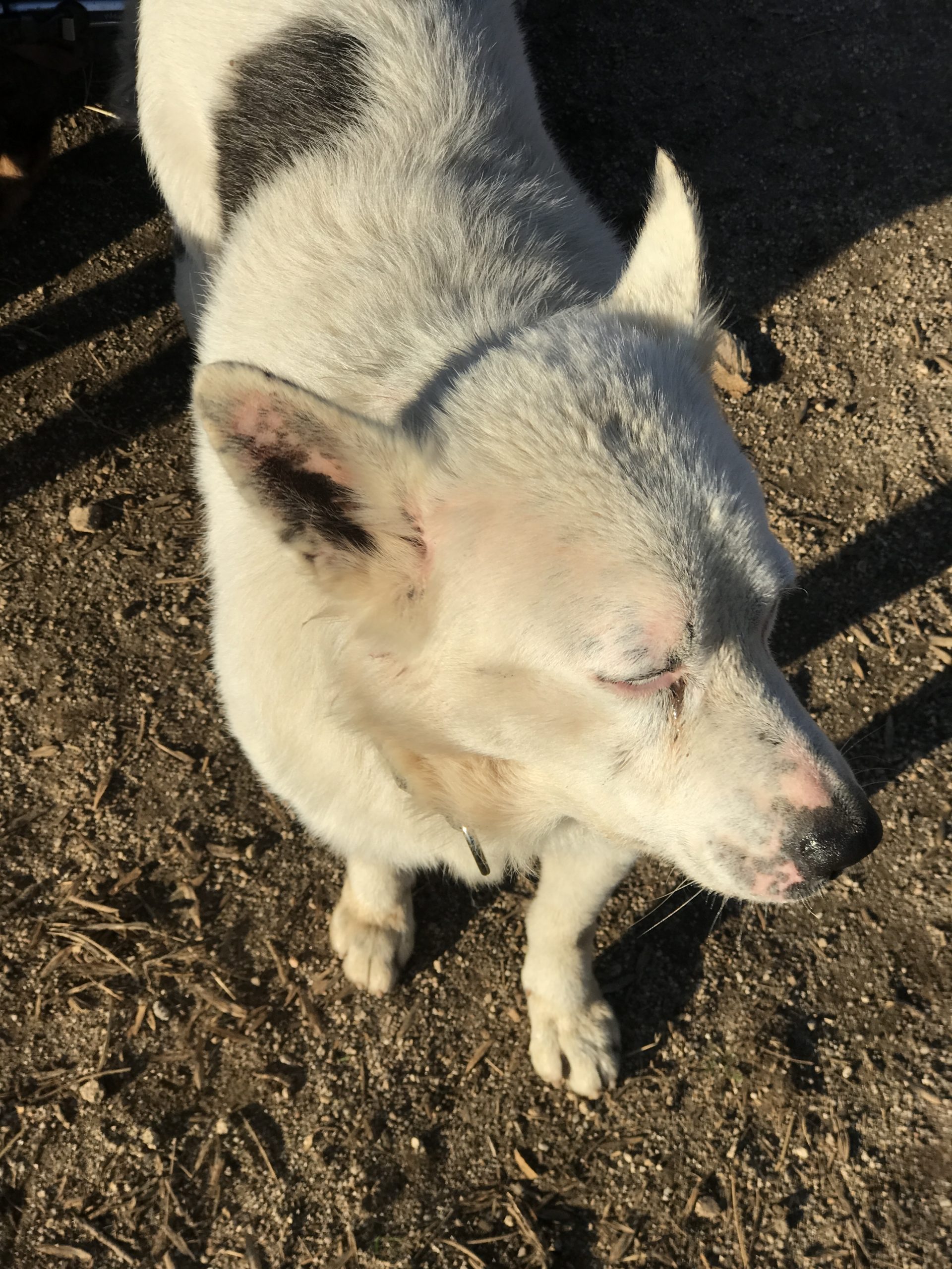 BRENDA: Está respondiendo muy bien al tratamiento frente a su infección por leishmania y se lo notamos en que le ha mejorado mucho su pelaje, las heridas de las orejas están cicatrizando y ella va cogiendo peso poco a poco.