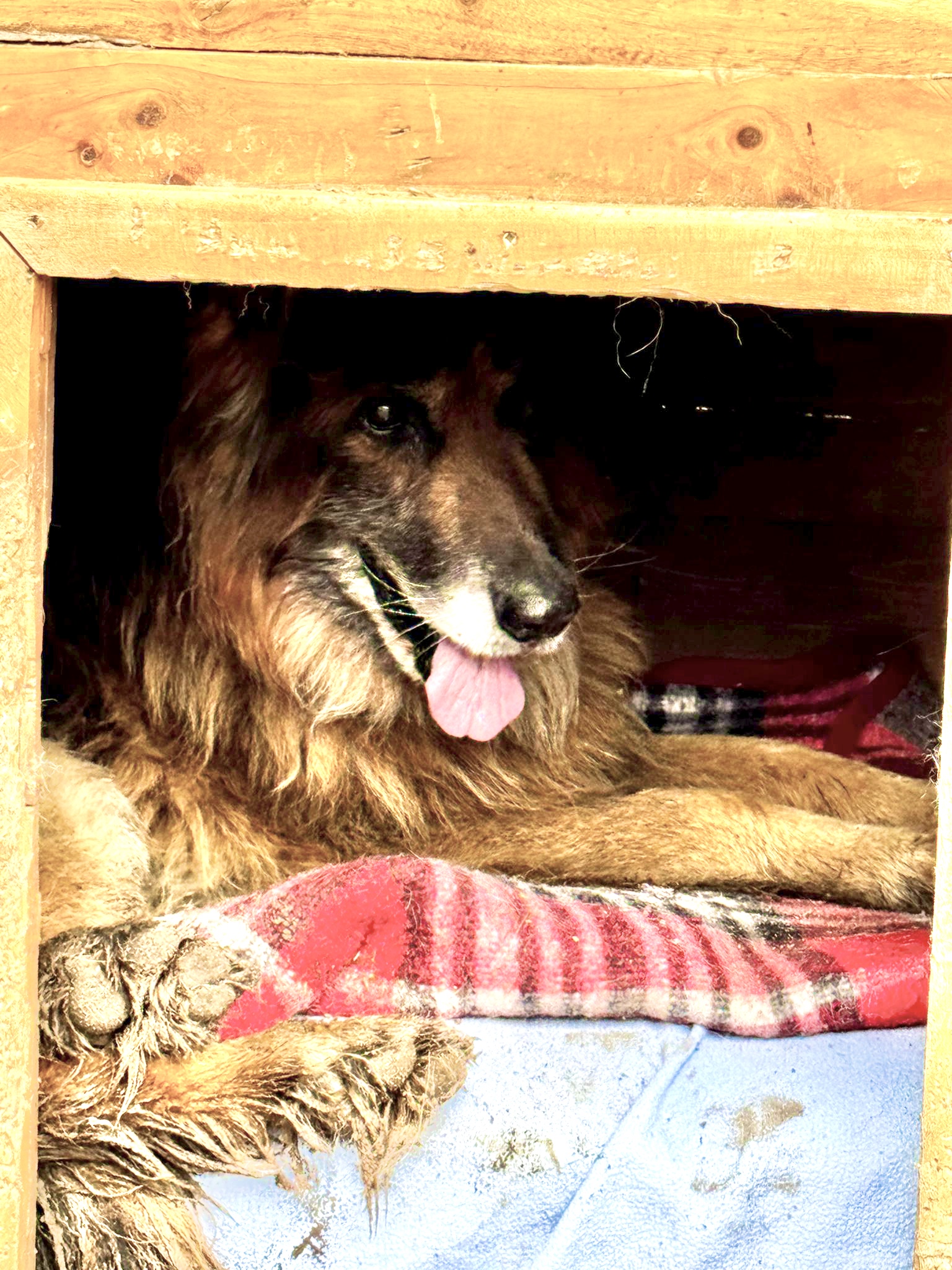 EDU: ¡Nuestro abuelito pastor alemán con displasia de cadera y artrosis lleva unos días que solo le apetece estar metido dentro de la caseta calentito y cómodo! Es por eso que nos encantaría encontrarle un hogar de acogida en el que pudiera estar tranquilo, tumbado y dar paseos muy muy cortitos. Necesita un lugar sin escaleras. Se comporta fenomenal con los otros perros y con las personas.