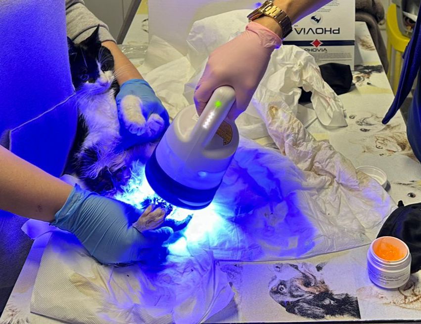 Como ya os contamos, a primeros de semana llegó LUZ. Está evolucionando muy bien. Ayer le retiraron el punto de sutura del drenaje y de momento no tiene inflamación ni signos de infección externa. Ella está contenta, come muy bien y con apetito. La herida de la pata sigue similar. Sigue en tratamiento antibiótico intensivo y con antiinflamatorios y analgésicos. Aún es pronto para ver evolución porque era una herida muy grande y fea que se ha cerrado; por lo que hay que ser cautos y estar muy atentos a cualquier signo de complicación como infección, formación de absceso u obstrucción de glándula salival.