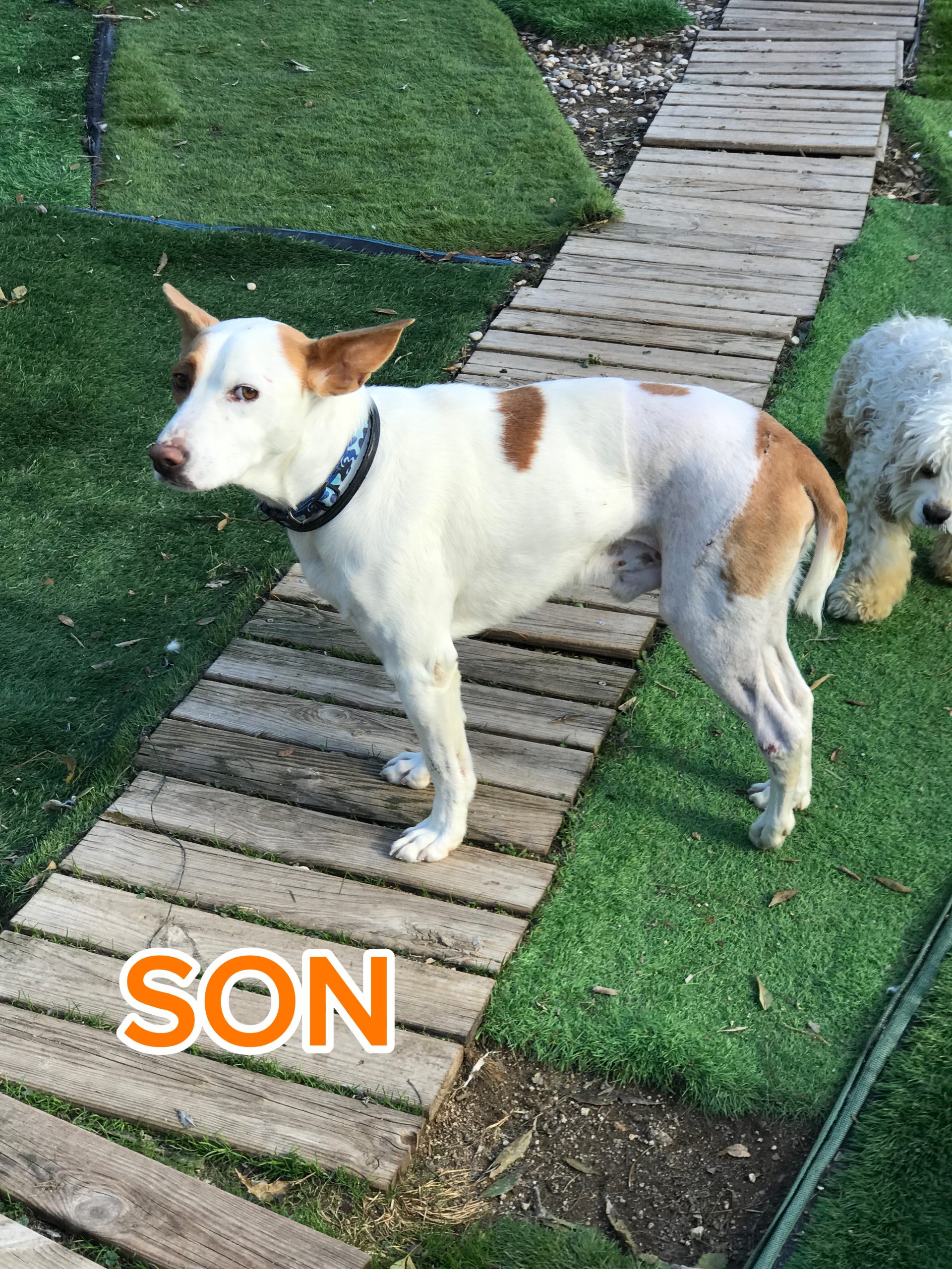 SON: Tuvo revisión de heridas y le retiraron todos los puntos de sutura. Ahora tiene que empezar con su rehabilitación y fisioterapia para ir recuperando movilidad y fuerza en su cadera derecha. Es muy bueno y dulce y en cuanto nos ve se acerca para buscar mimos y carantoñas.