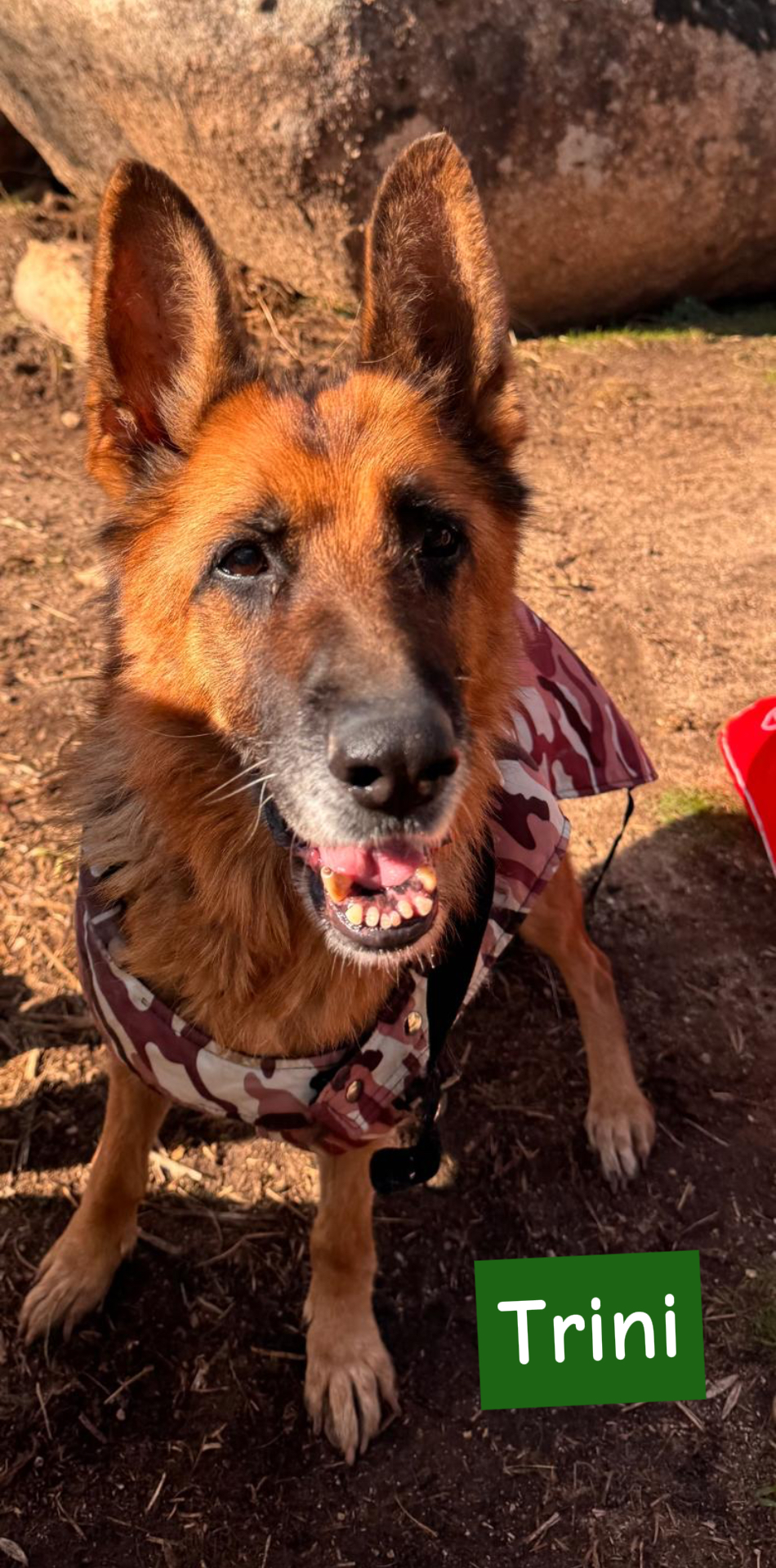 TRINI: La pastorcita alemana que llegó en los huesos y siendo todo piel se está convirtiendo en todo un bellezón. Su apetito es voraz y disfruta comiendo como la que más. Si sigue así y con ese apetito, conseguirá ir recuperando su peso y cogiendo fuerza y masa muscular.