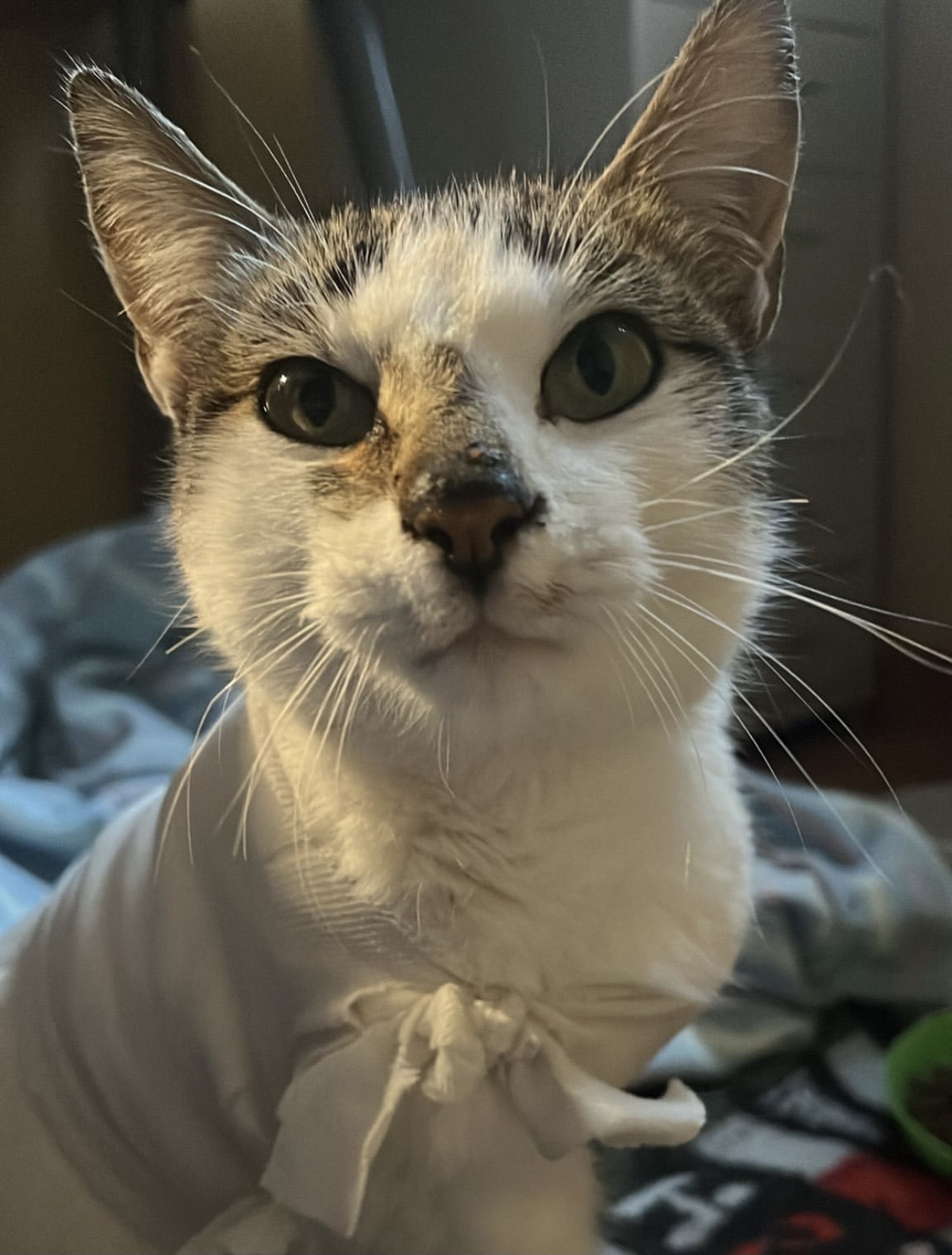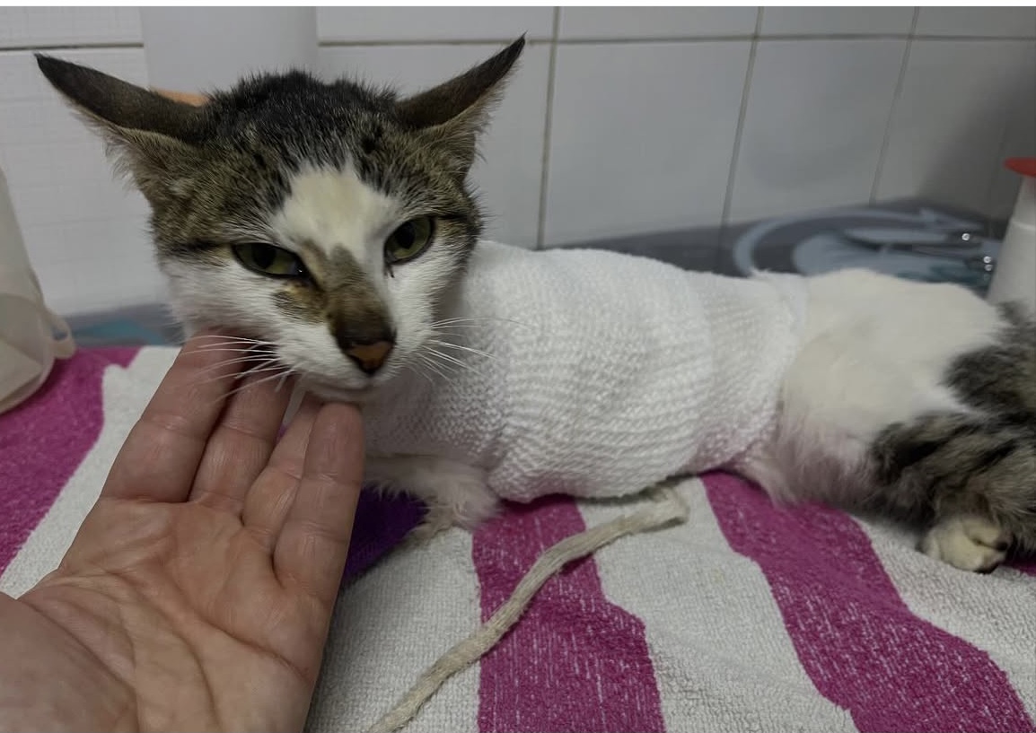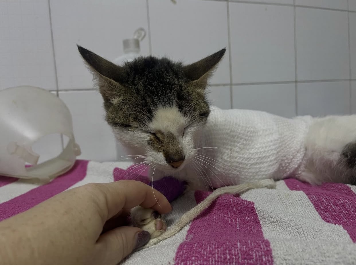 Nos pidieron ayuda de una protectora de Extremadura para ver si nos podíamos hacer cargo de este pequeñín. Apareció en plena calle con una pata amputada, una infección severa en la otra pata, desnutrido, deshidratado e hipotérmico. Tras estabilizarse y mejorar, ha llegado a BICHOSRAROS. Ya está en casa de mamá Macu, donde le está haciendo las limpiezas y curas diarias de la herida de la amputación (que está totalmente expuesta) y sigue con su tratamiento pautado. ¡Va a ser una recuperación lenta, pero lucharemos por él!