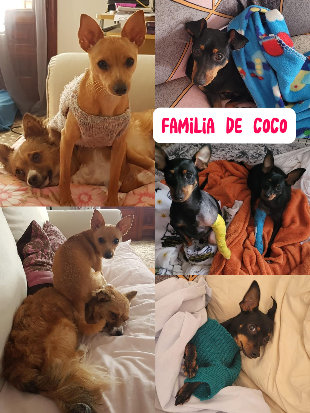 Aunque creo que nada mejor que empezar con una noticia que va a alegrar a más de uno: COCO HA SIDO ADOPTADA. Macu y Juan Antonio han llevado a la chiquitina con su nueva familia que vive en Ibiza. ¡Esta preciosa familia encabezada por Rocío ya tiene tres perros nuestros adoptados de BICHOSRAROS (Trasto, Tom y Jerry), todos con discapacidades similares a las que padece Coco y con un gran equipo veterinario y de rehabilitación que les respalda! Rocío es una mujer que ha cambiado la vida a estos perros de una manera fabulosa, ya que los ha integrado y les ha dado la oportunidad de vivir una vida normal. Por ello nos hace muy felices saber que Coco será un miembro más de esa bonita familia, la cual le está esperando con muchísima ilusión. A Coco le esperan muchas aventuras por vivir, muchas sesiones de rehabilitación, muchas carreras con su sillita de ruedas, muchos paseos por la playa y muchos momentos que disfrutar con su nueva familia. ¡Os iremos contando qué tal le va a nuestra pequeña Coco por Ibiza!