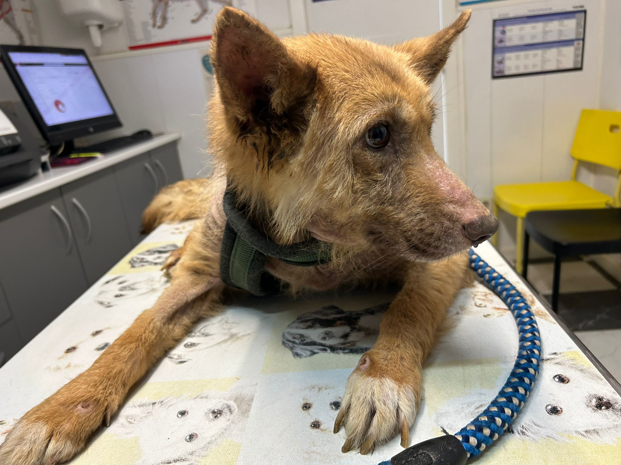 - LAILA: Una de las pequeñas que llegó esta semana con la piel fatal y muy desnutrida. Fue valorada en el veterinario, donde le hicieron varias pruebas y parece que tiene un problema de tiroides que necesita medicación. Empezaremos con su tratamiento y os contaremos la evolución.