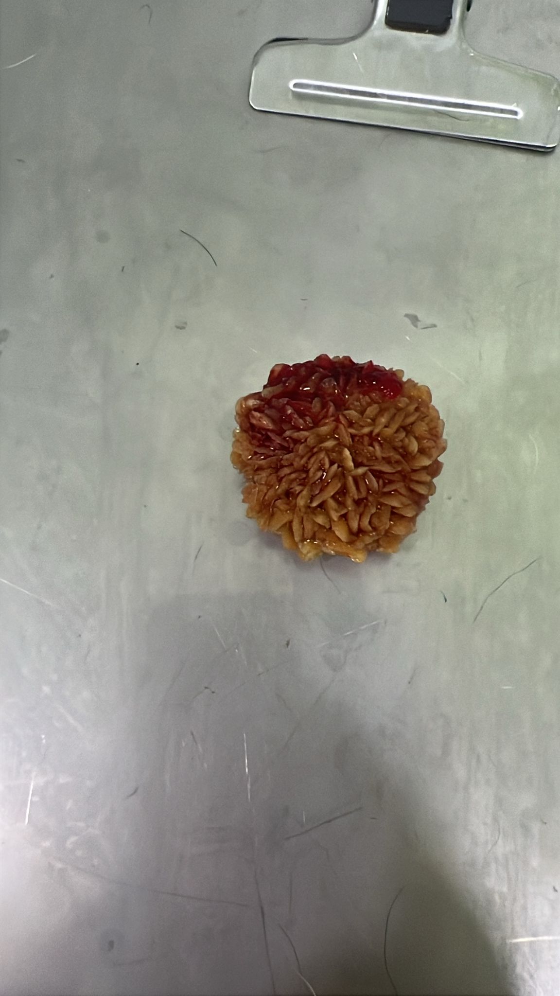 - ROX: Nuestro abuelito de 16 años llevaba unos días con problemas urinarios, así que lo llevamos al veterinario, donde vieron que tenía una piedra gigante en la vejiga. Tuvo que ser intervenido de urgencia y ha salido todo muy bien, pero aún está flojito y recuperándose… Y es que no es para menos; ¡mirad qué piedra tan enorme tenía!