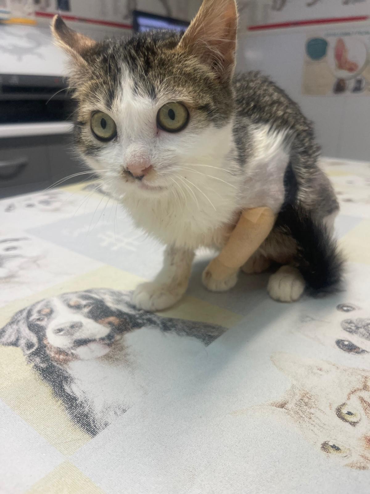 - SOL: Nuestra pequeña gatita, que tuvo que ser operada de sus patas tras el atropello, ha estado estos últimos días con un resfriado e infección de una de sus patas. Tras valoración veterinaria, se ha iniciado tratamiento y ahora nos toca esperar y ver cómo evoluciona.