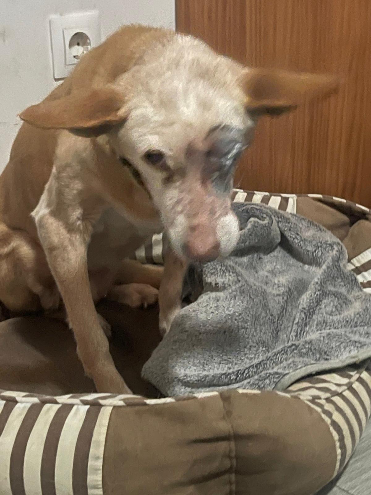 - ESCARLATA: Tuvo que pasar por quirófano para extirpación de su ojo izquierdo, ya que le provocaba muchísimo dolor. Es muy buena y se está recuperando poquito a poco.