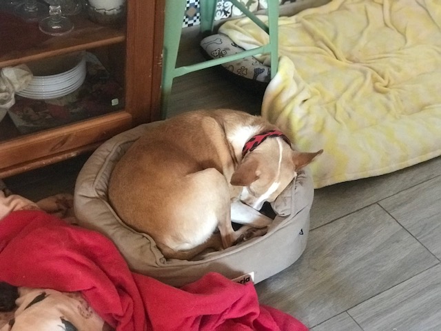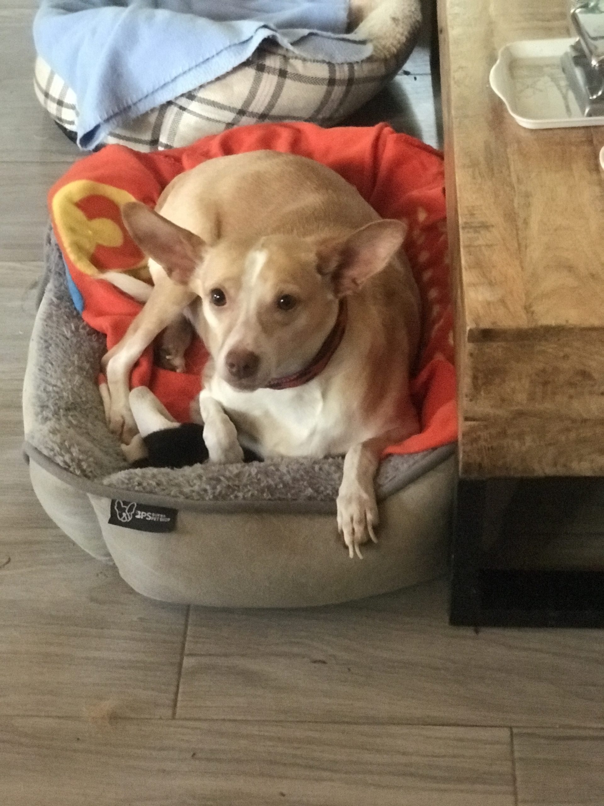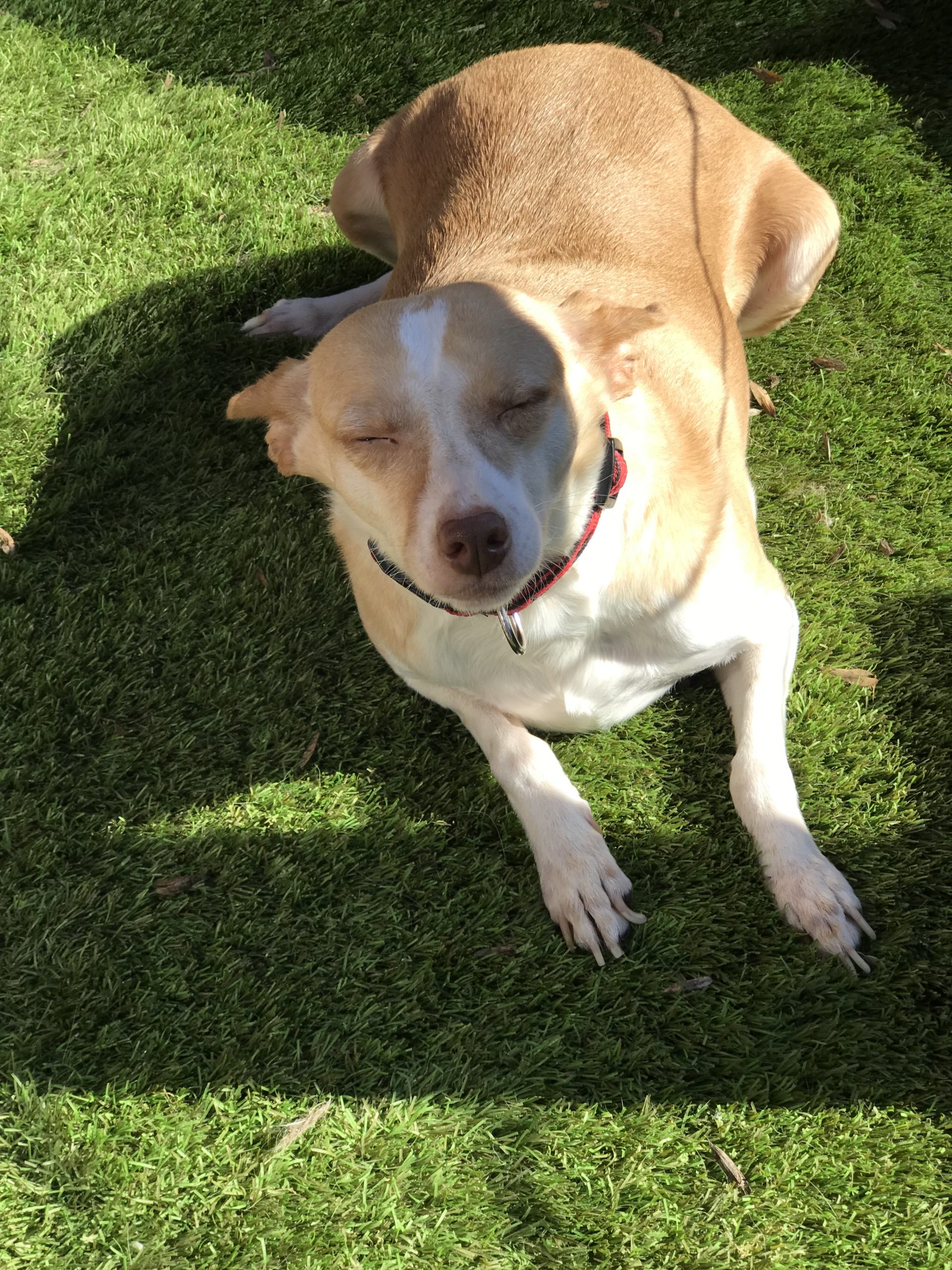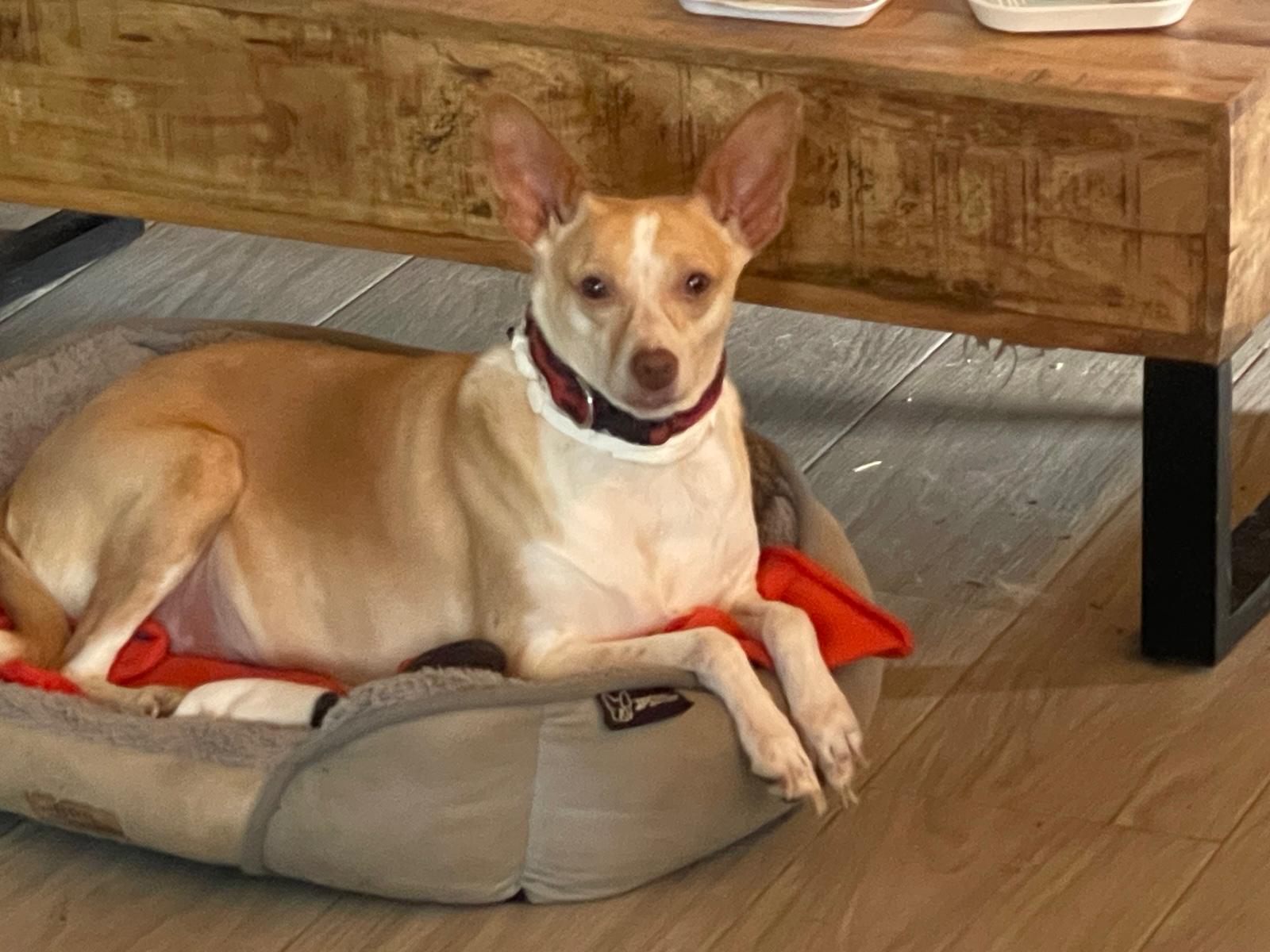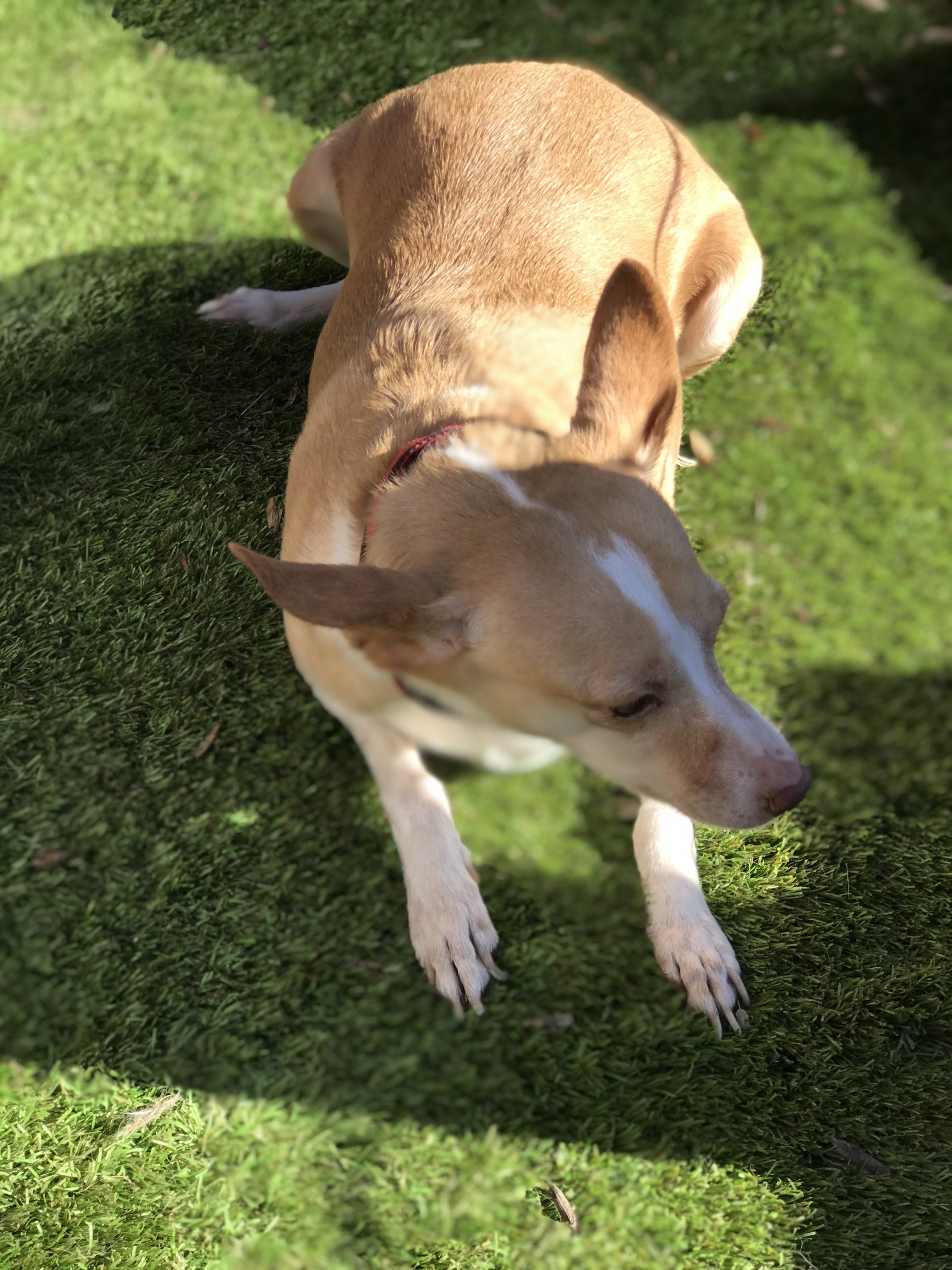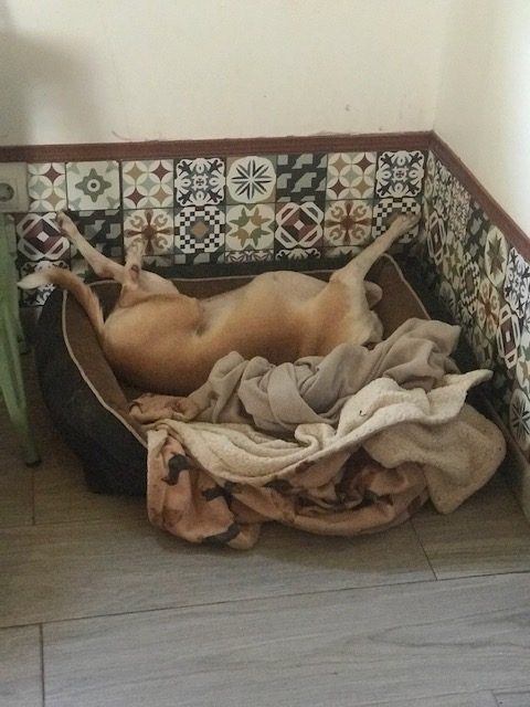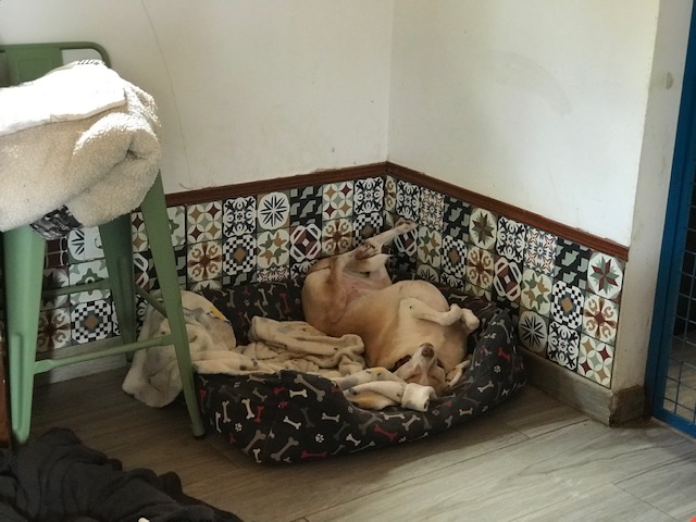 RITA apareció atropellada en un lateral de una carretera mientras diluviaba. La llevaron corriendo al veterinario y vieron que tenía una lesión medular inoperable. Se quedó parapléjica e incontinente. Como nadie quiso hacerse cargo de ella, María y Macu fueron a recogerla y se la trajeron a Bichosraros. Rita fue poco a poco mejorando y recuperó marcha espinal, por lo que camina sola y sin necesidad de silla de ruedas. Es incontinente, pero no le incapacita para ser feliz y disfrutar de la vida.