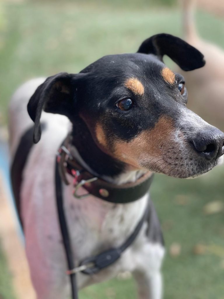 Es un perro con muy buen carácter, compatible con otros perros, que pasea con correa y que necesita un sitio que no sea una protectora para poder vivir con algo más de confianza, ya que de todos los animales que se le acercan, él tiene miedo de que le hagan algo.